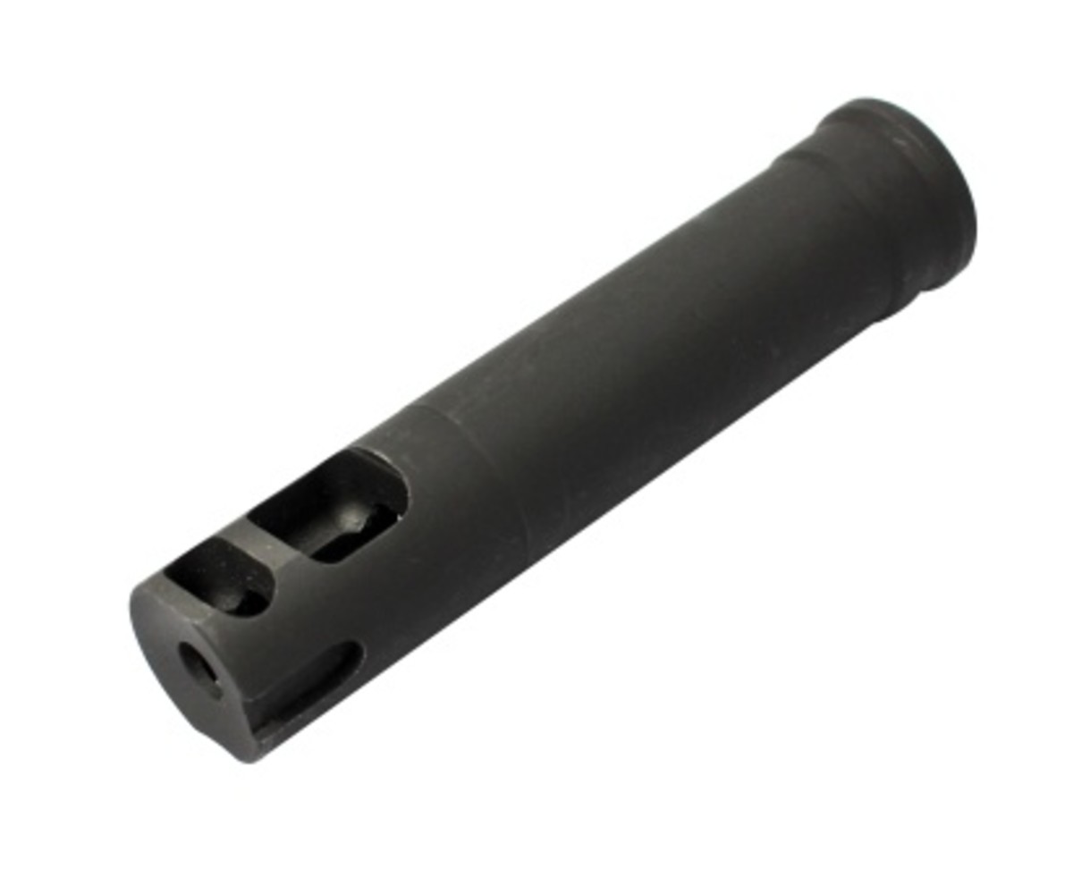 Quick detach silencer that fits over existing flash hiders. Perfect for those flash hiders that are permanently affixed to the barrel.