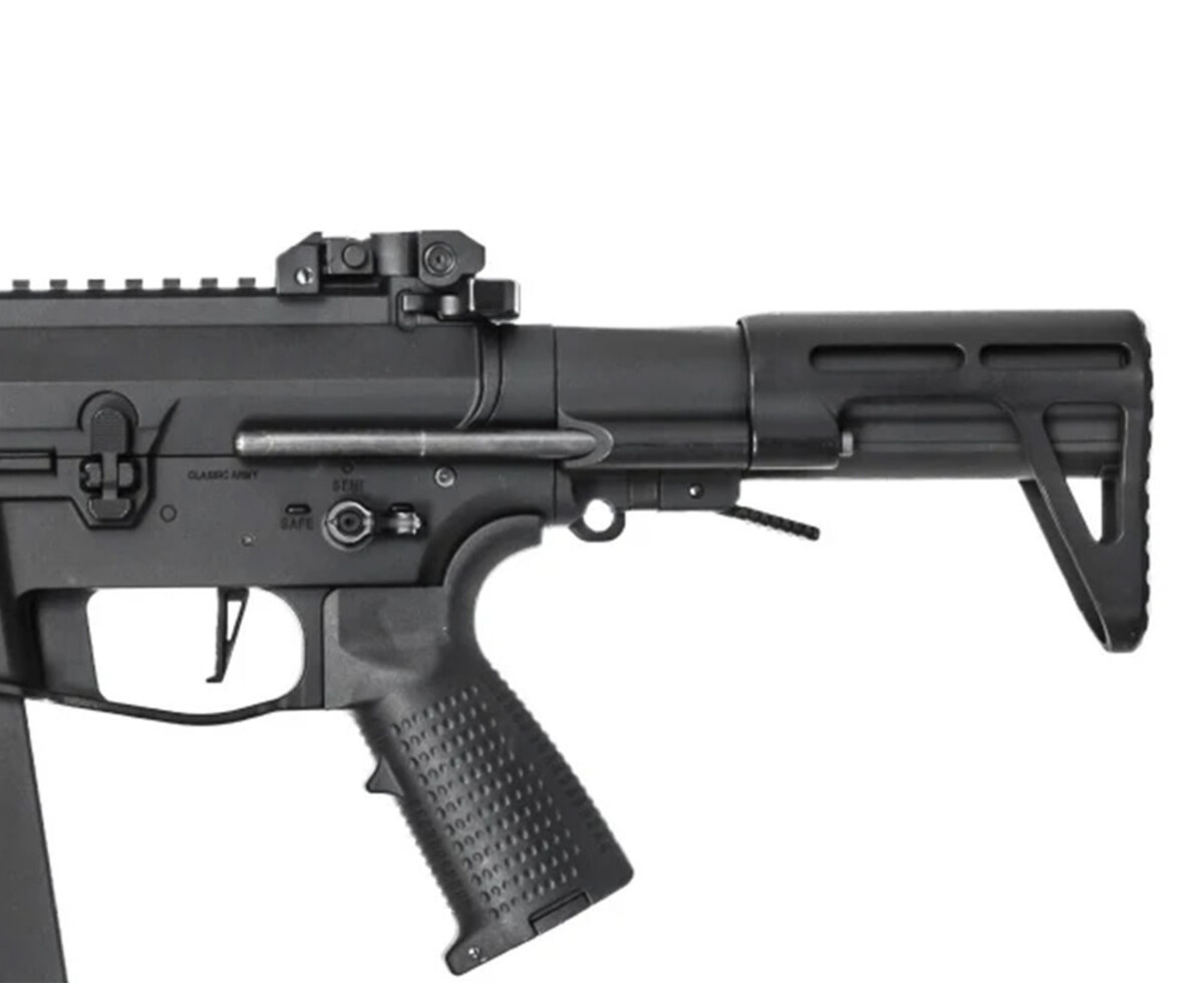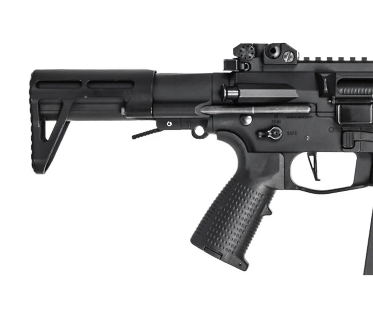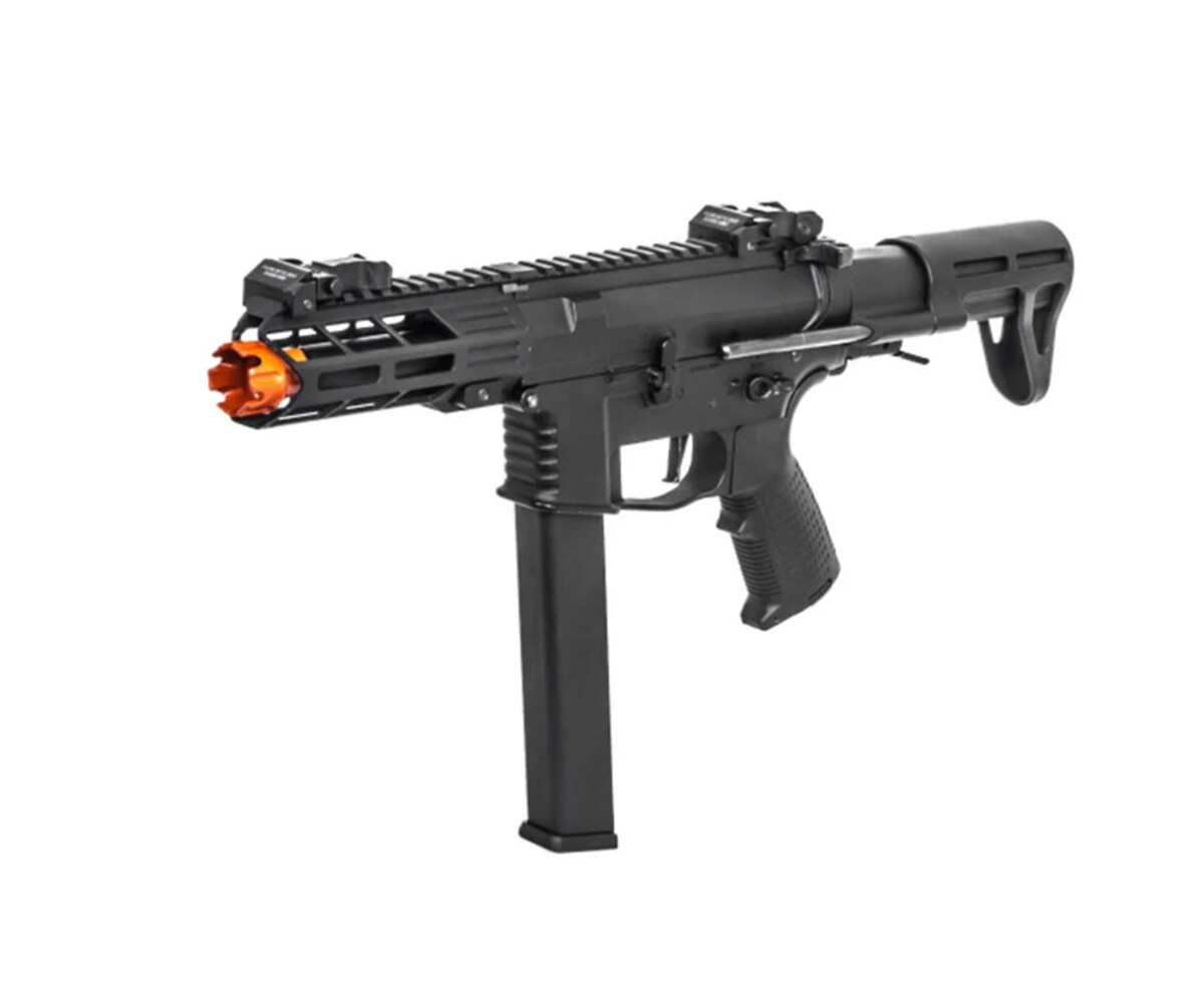 Compact and Lightweight Design: The AX-9 features a robust yet lightweight polymer construction, making it easy to maneuver during intense CQB matches. The retractable PDW-style stock ensures a comfortable fit and versatile handling.