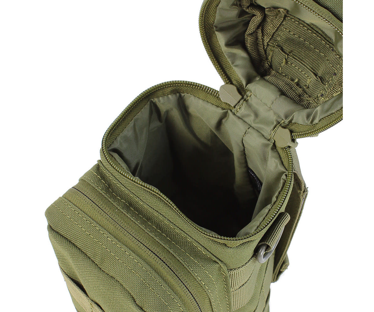 The Condor H2O Pouch is designed for you to carry your water bottle via shoulder, modular webbing, or belt. The MA40 features hydration tube pass-thru, front accessory pocket, and heavy duty webbing for modular attachments.