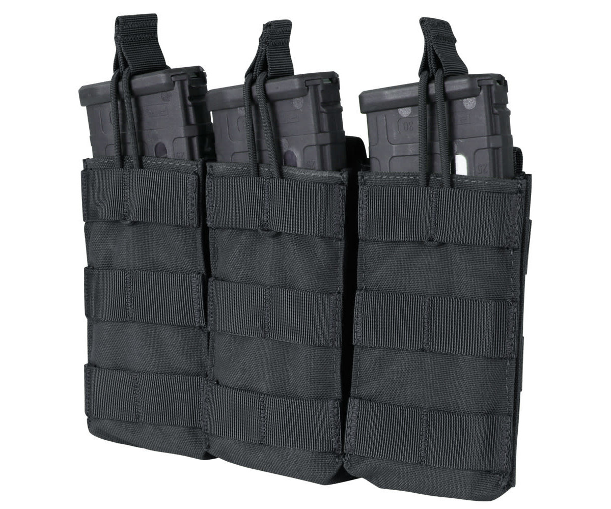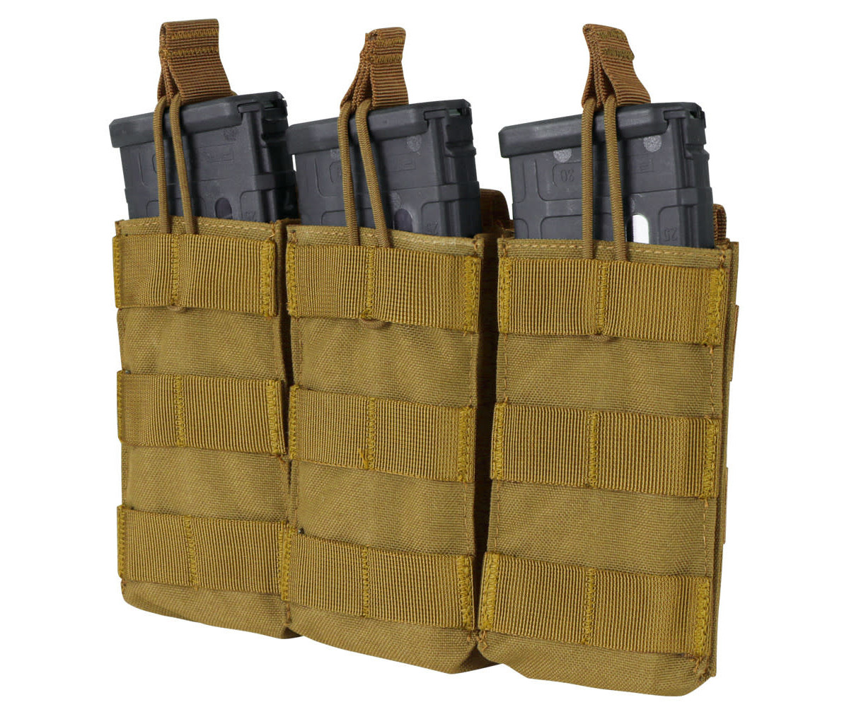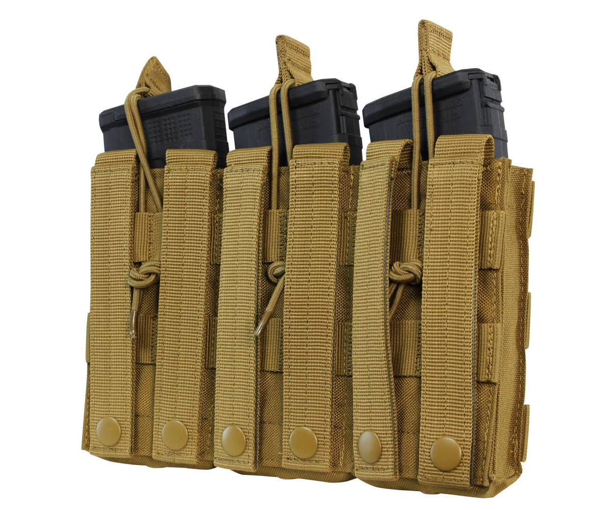 The Condor M16 Triple Open Top Mag Pouch is designed to make reloading faster while keeping the magazines secure during gameplay. The bungee cords are stretchy enough to hold some larger capacity M4 magazines but easy enough to pull to the side. The Condor M16 Triple Open Top Mag Pouch is an accessory highly advised to have on your loadout to give you that slight edge. Pairs nicely on a Condor MCR-3 or -4 chest rig or on a Battle Belt.