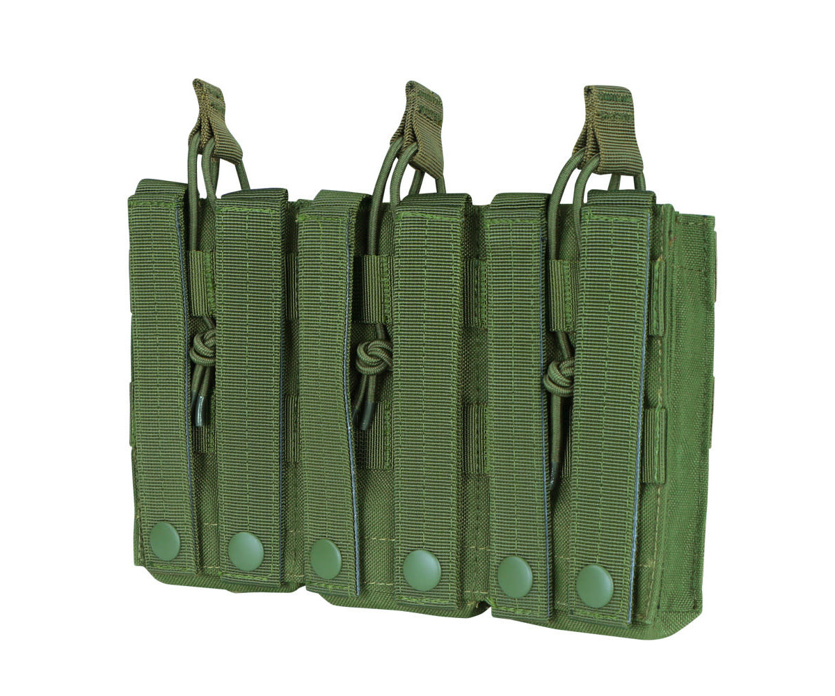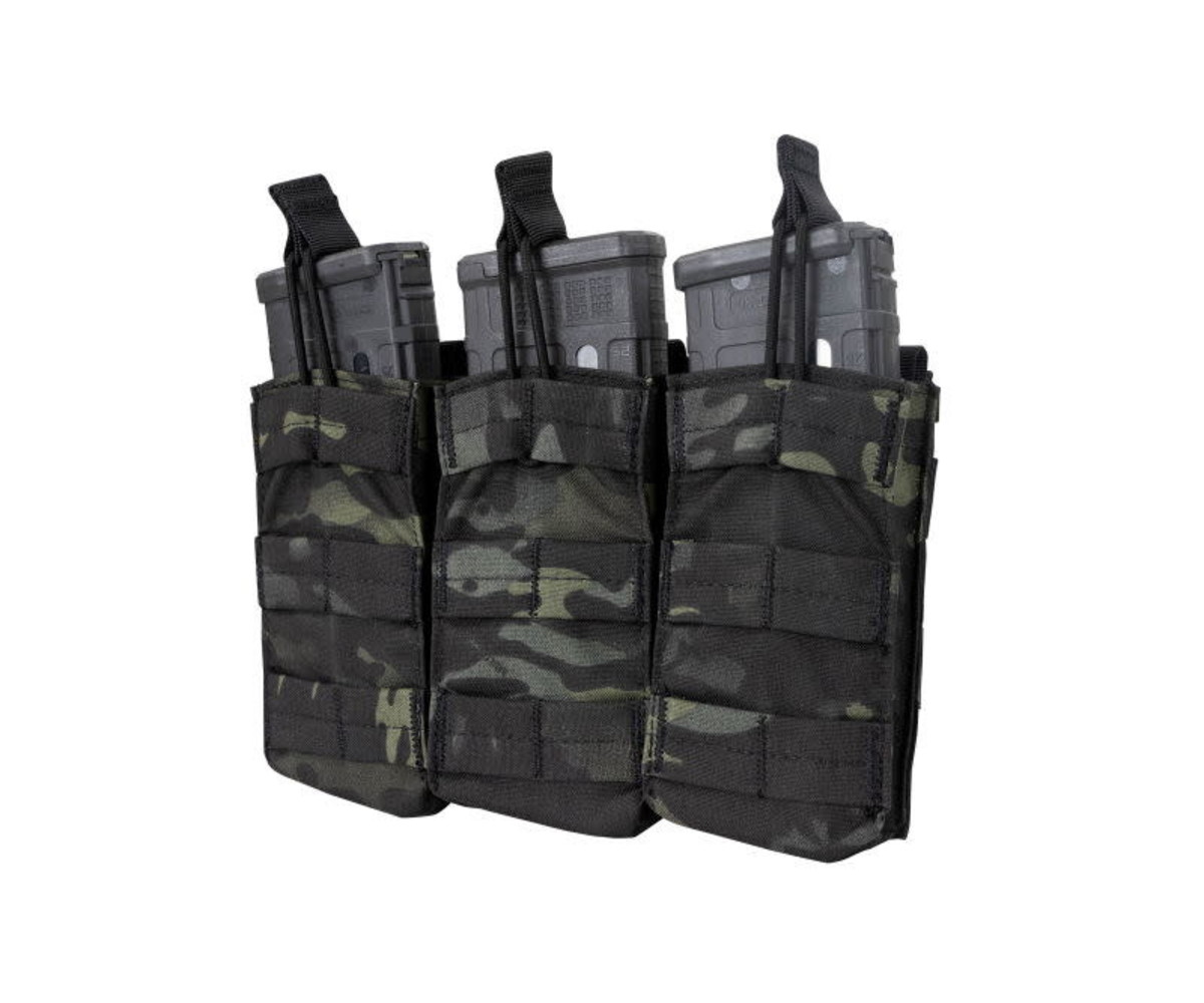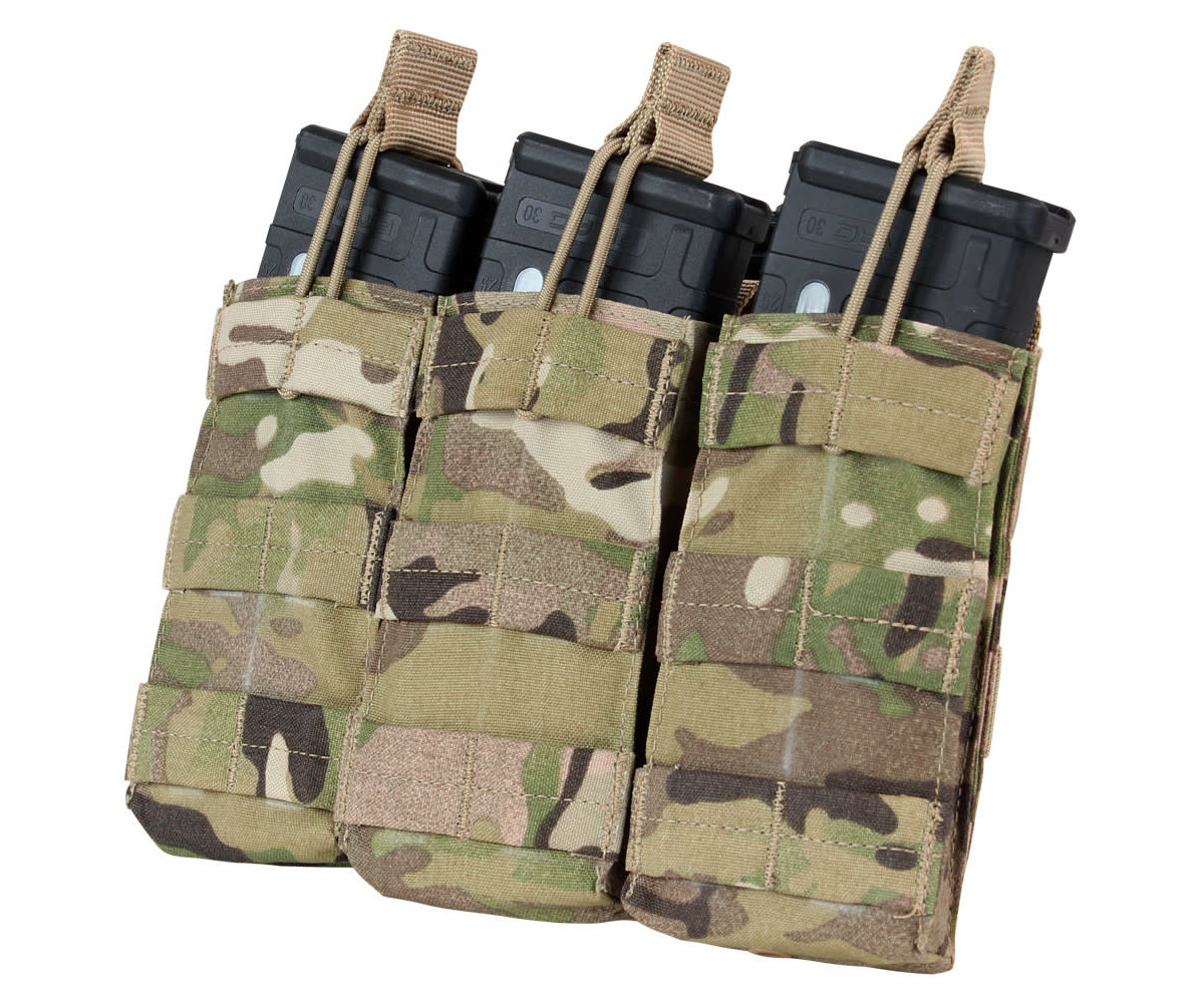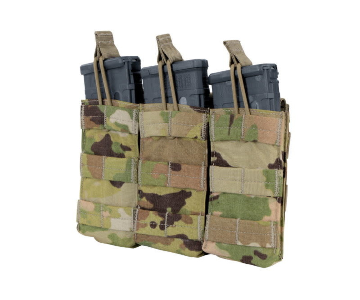The Condor M16 Triple Open Top Mag Pouch is designed to make reloading faster while keeping the magazines secure during gameplay. The bungee cords are stretchy enough to hold some larger capacity M4 magazines but easy enough to pull to the side. The Condor M16 Triple Open Top Mag Pouch is an accessory highly advised to have on your loadout to give you that slight edge. Pairs nicely on a Condor MCR-3 or -4 chest rig or on a Battle Belt.