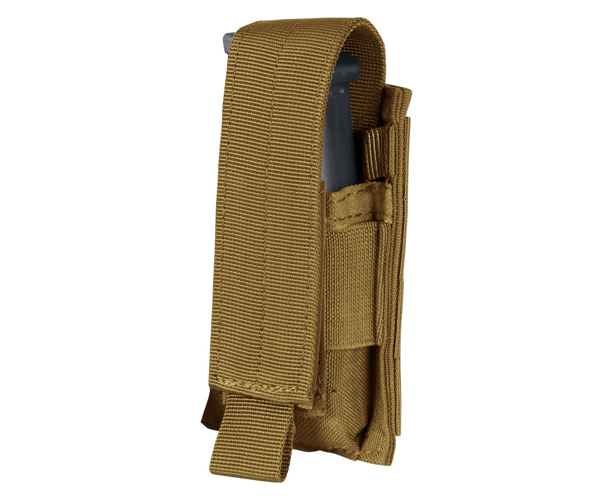 The Condor Pistol Mag Pouch fits almost any pistol magazine. The adjustable flap also makes it ideal storage for utility items and small tools.