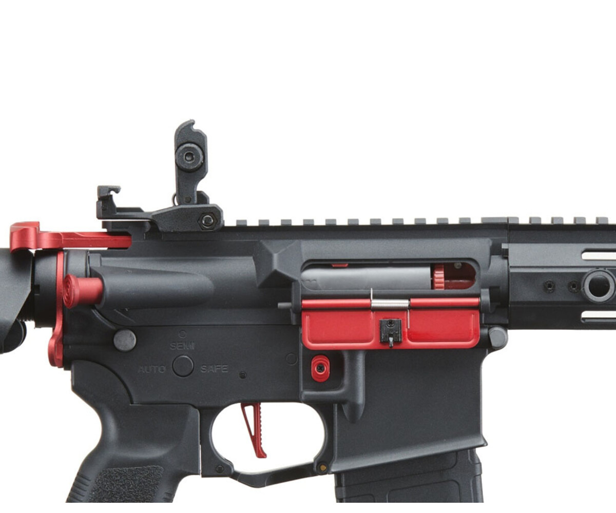 Ready to step up your Airsoft game? The Lancer Tactical Gen 2 Hellion M-LOK 7" Airsoft M4 AEG Core Series is built for the player who demands precision, performance, and versatility. With over 20 years of experience, Lancer Tactical delivers a top-tier rifle that’s perfect for both new players and seasoned veterans alike. This sleek black and red beauty packs in an array of high-performance features, making it an ideal choice for your next skirmish.