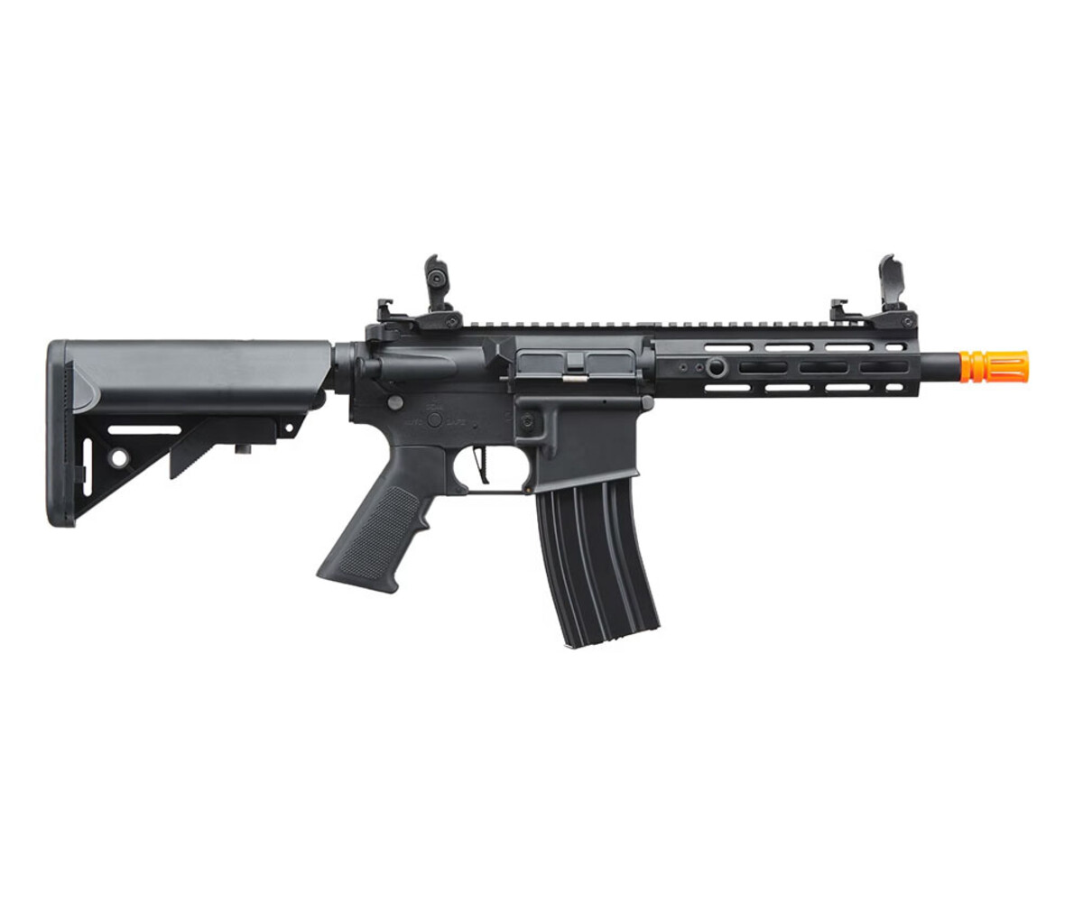 Perfectly suited for both new and experienced players, this M4 AEG comes with everything you need to get started: a 140-round mid-cap magazine, a 9.6v battery, charger, and even a patch to show off your Airsoft Extreme pride. The ergonomic Gen 3 style pistol grip provides extra comfort, while the flip-up front and rear iron sights make target acquisition quick and easy. Plus, the retractable stock gives you the ability to adjust to your preferred shooting style. If you're looking for a high-performing and customizable electric rifle, the Lancer Tactical GEN2 M4 7" M-LOK AEG is the perfect pick!