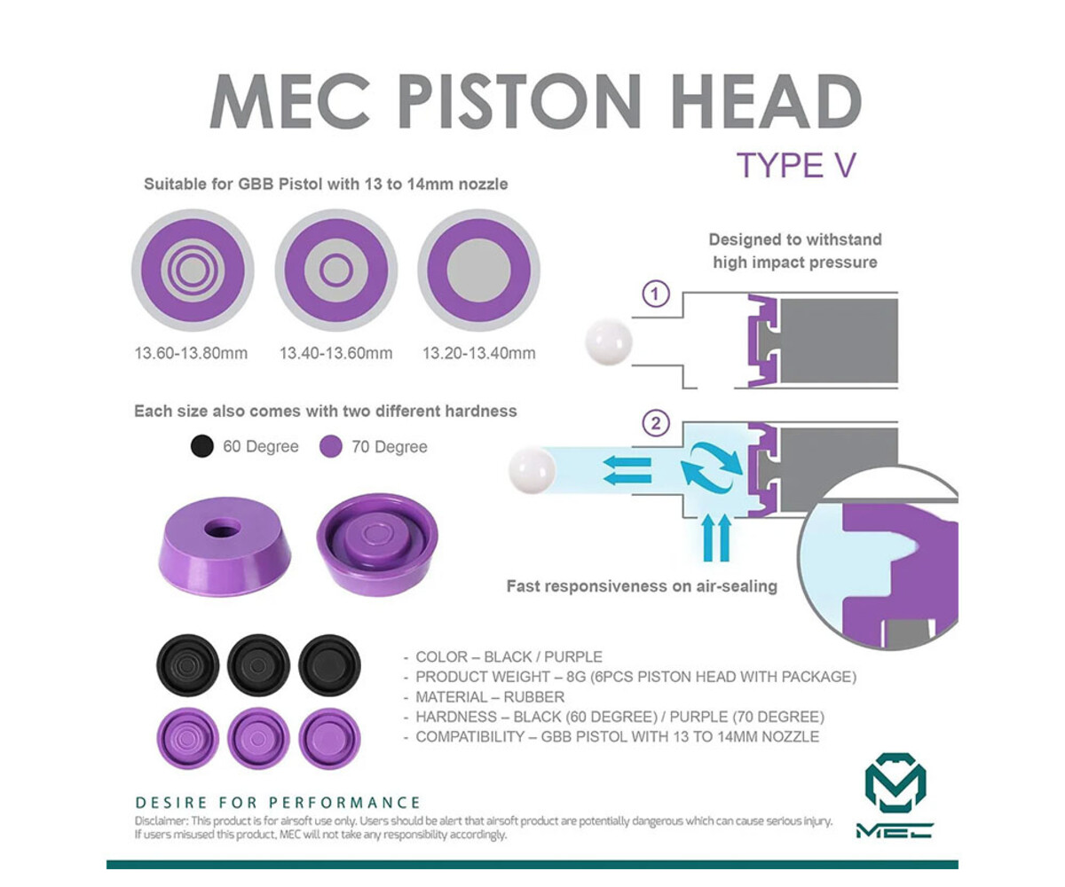 MEC V Piston Head Set; Enhanced Airseal and Performance Upgrade for GBB Pistols