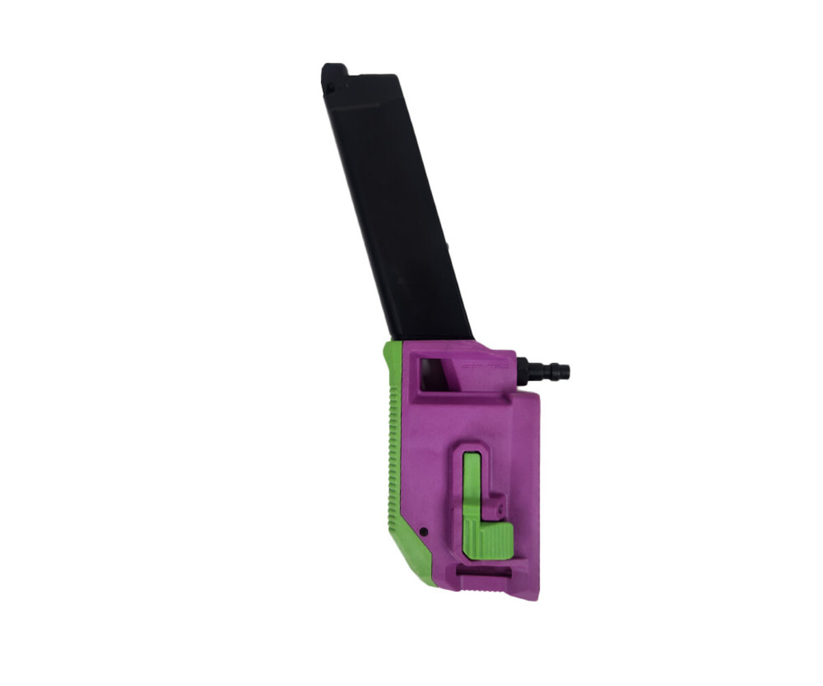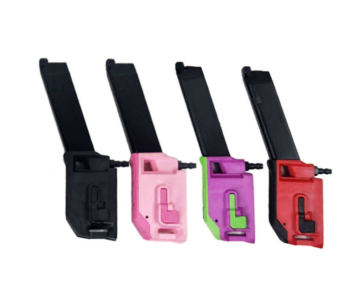 - Compatible magazine types: gas blowback airsoft guns that use TM/WE Glock-style pistol magazines, Action Army AAP-01 style magazines, and Tokyo Marui Hi Capa magazines (select model via dropdown at checkout).