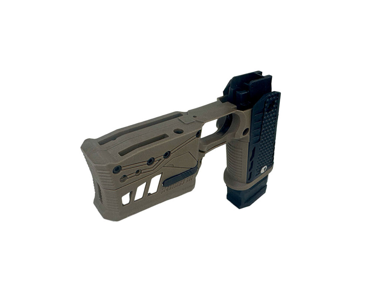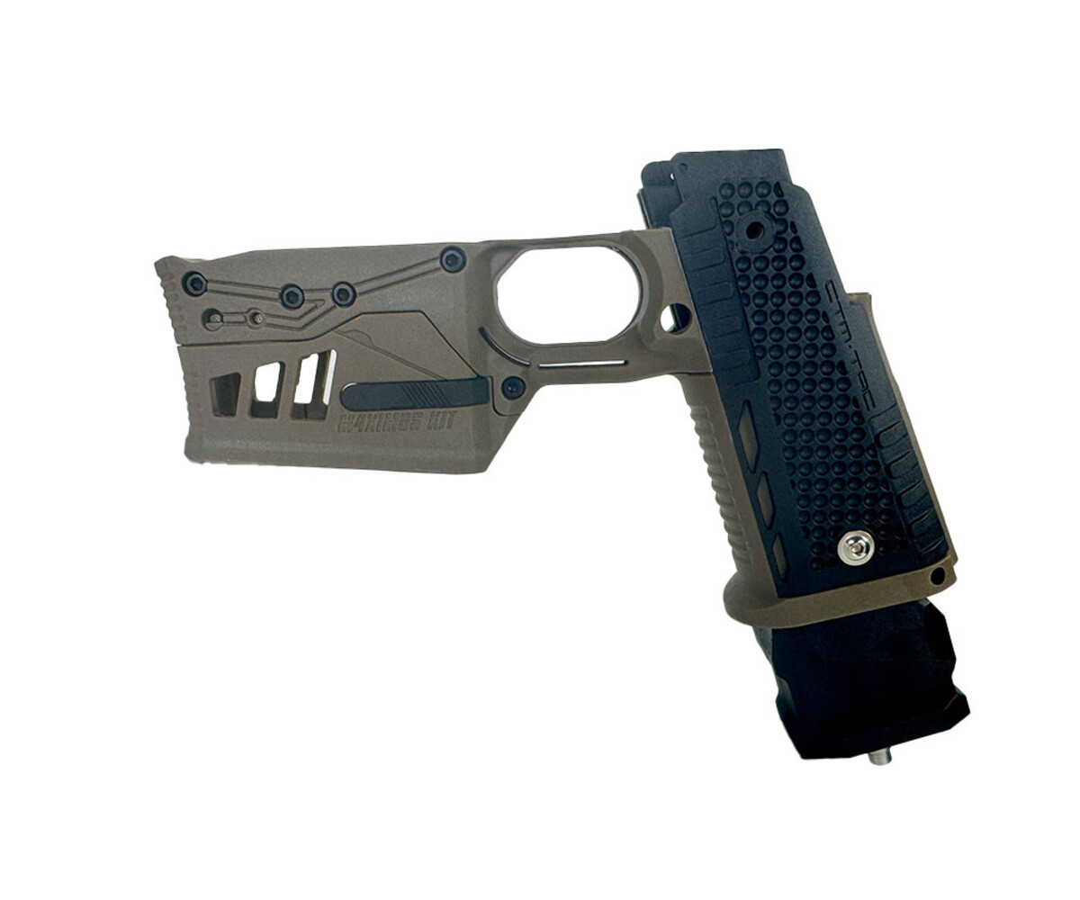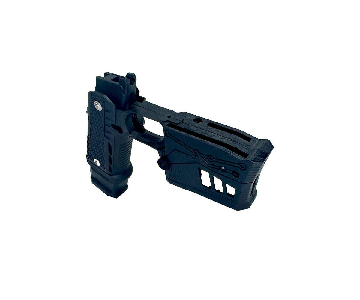 Built for competitive play and durability. The frame is constructed from a high-strength nylon polymer infused with 45% fiberglass for rigidity and resilience. The Polka dot style grip panels offer a secure, non-slip texture, and the open magwell window gives visual confirmation of BB feed in real time. Every detail of this kit was engineered to maximize your edge on the field without sacrificing compatibility or ease of use.