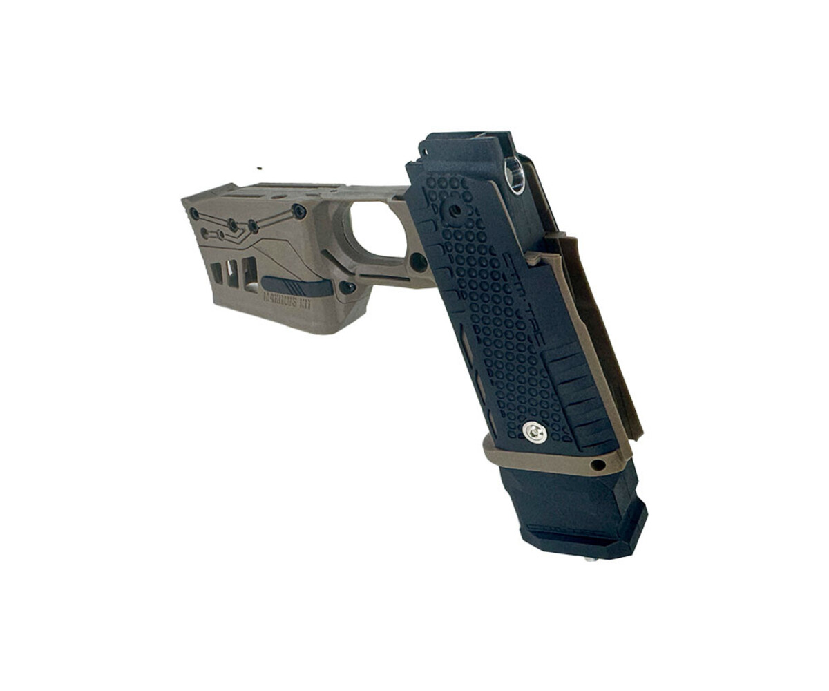 High-performance HPA conversion for Hi-Capa platforms. The CTM M4XIMUS HPA Frame Kit brings rifle-grade capacity and durability to your gas blowback pistol setup. Designed specifically for Tokyo Marui Hi-Capa 5.1 and 4.3 models, this kit enables the use of standard AEG M4 magazines and an external HPA setup.