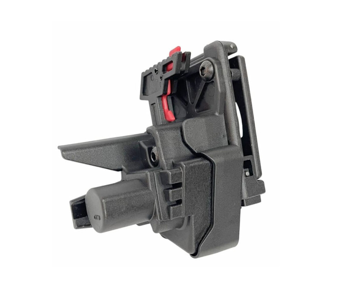 Equipped with a durable belt clip attachment, the CTM Hi Capa Speed Holster offers players the convenience of easy access without compromising on safety. The release lever, highlighted in striking red, features a dual safety mechanism that requires the depression of the lever safety for gun release, minimizing the risk of accidental discharges. Furthermore, the adjustable angle design allows for seamless integration with Molle and Safariland systems, offering versatile customization options for tactical setups.