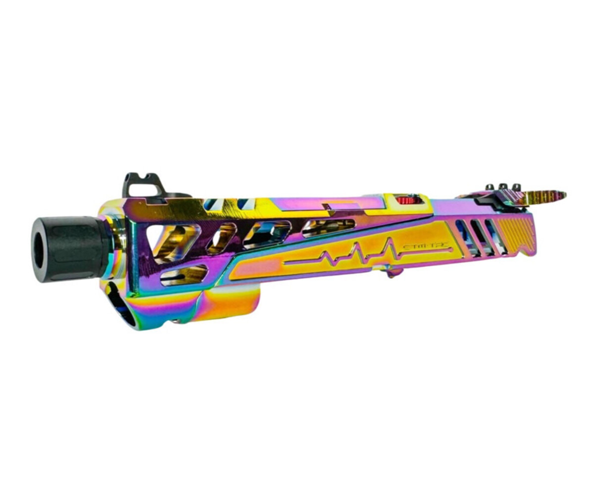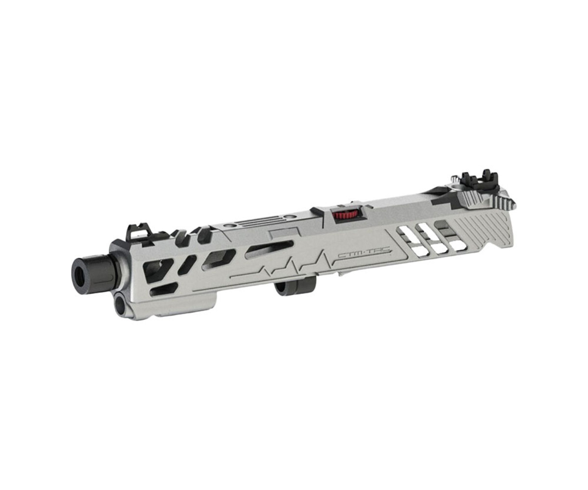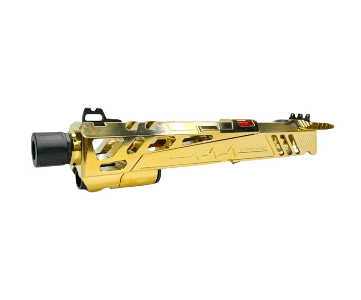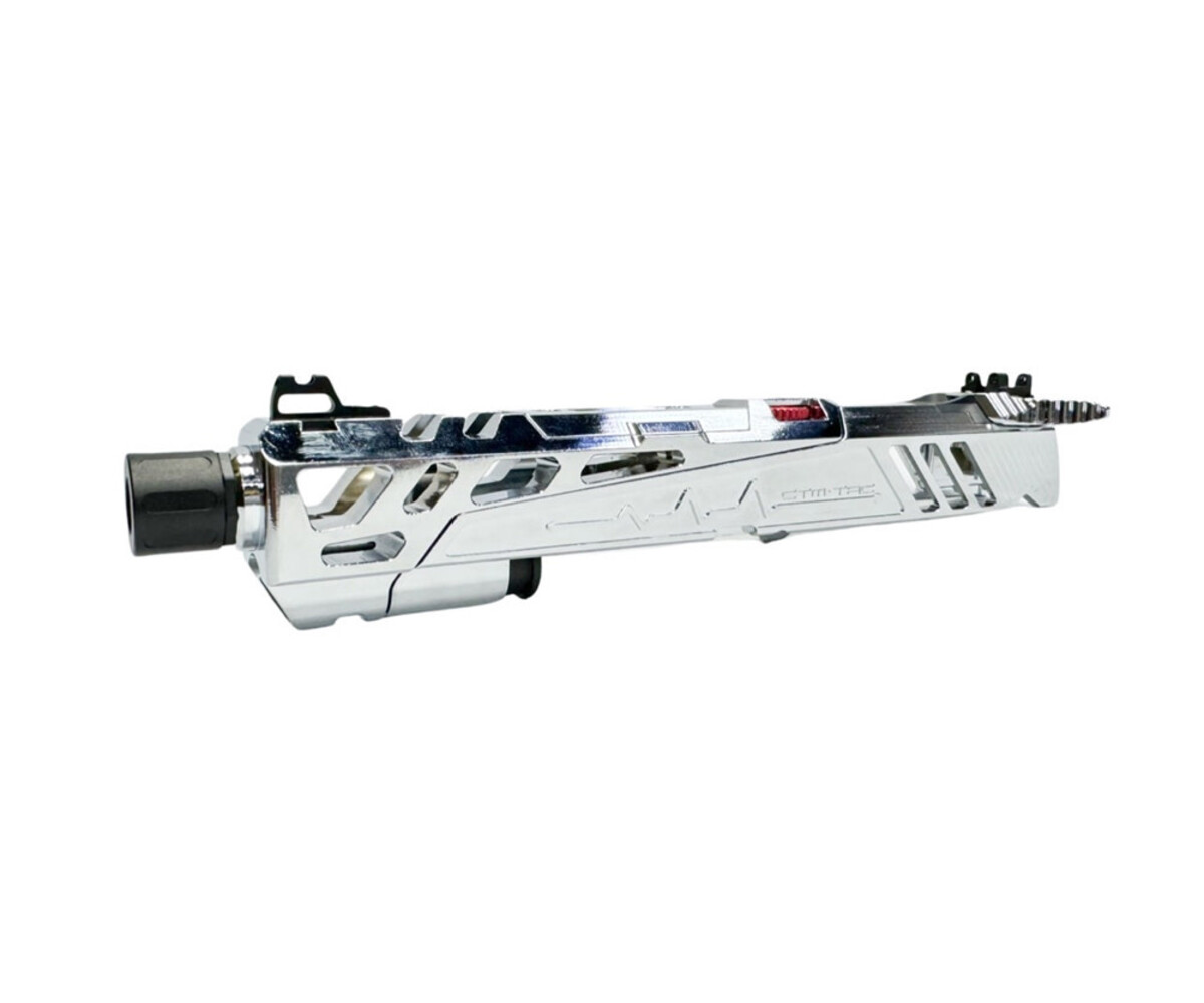 Take your airsoft experience to the next level with the CTM TAC Flatline Split Slide Kit for Tokyo Marui Hi Capa 5.1 pistols. Renowned for its innovation, the Flatline is not your average slide. With its unique split design, this slide redefines speed and accuracy, ensuring unparalleled performance in the field. The integral outer barrel, a standout feature, streamlines the slide, eliminating the need for a separate piece. Crafted from premium 6061 Aluminum and equipped with aggressive CNC cuts, this slide doesn't just upgrade your weapon's functionality but its aesthetics as well.