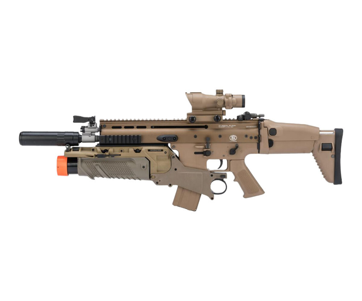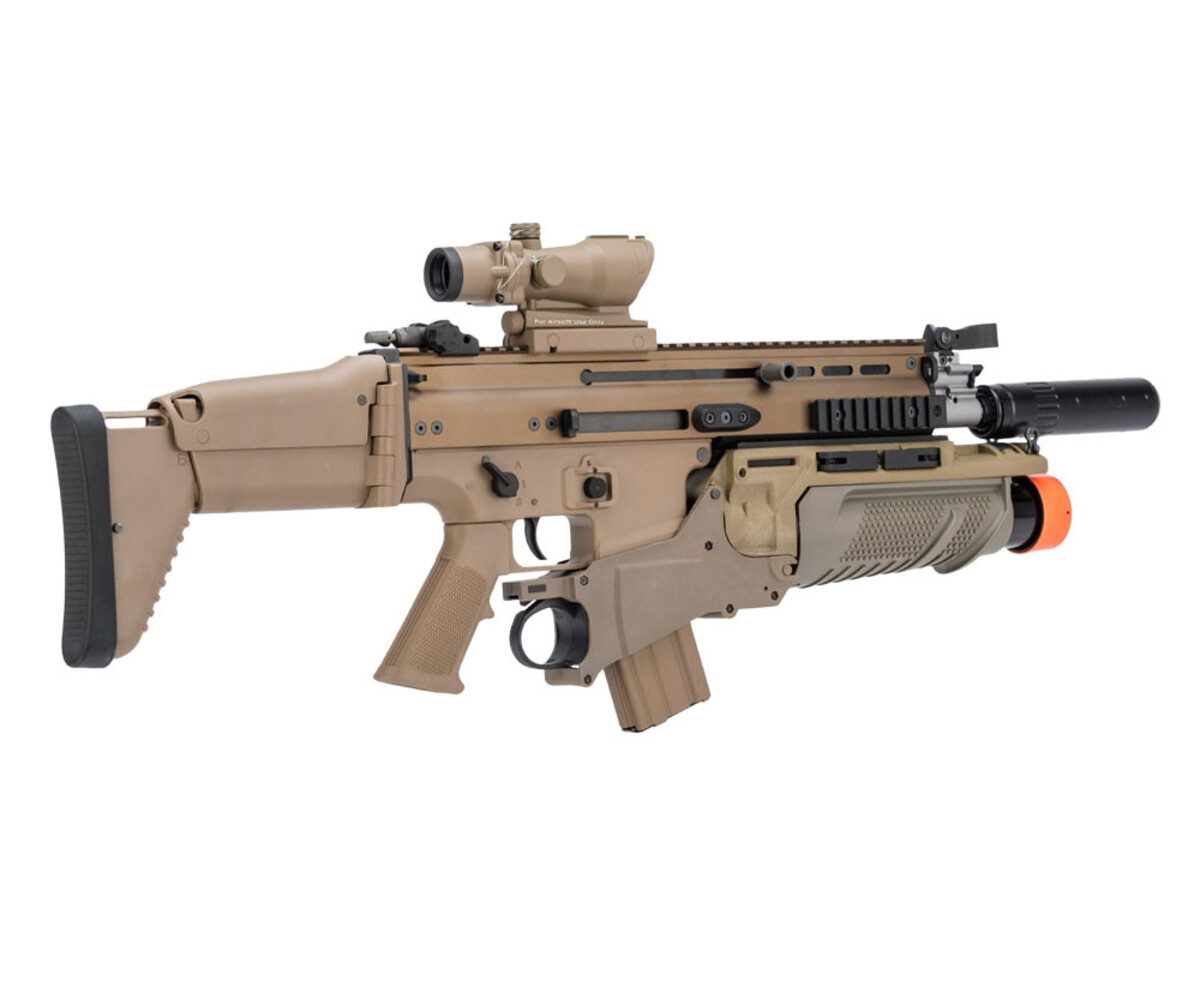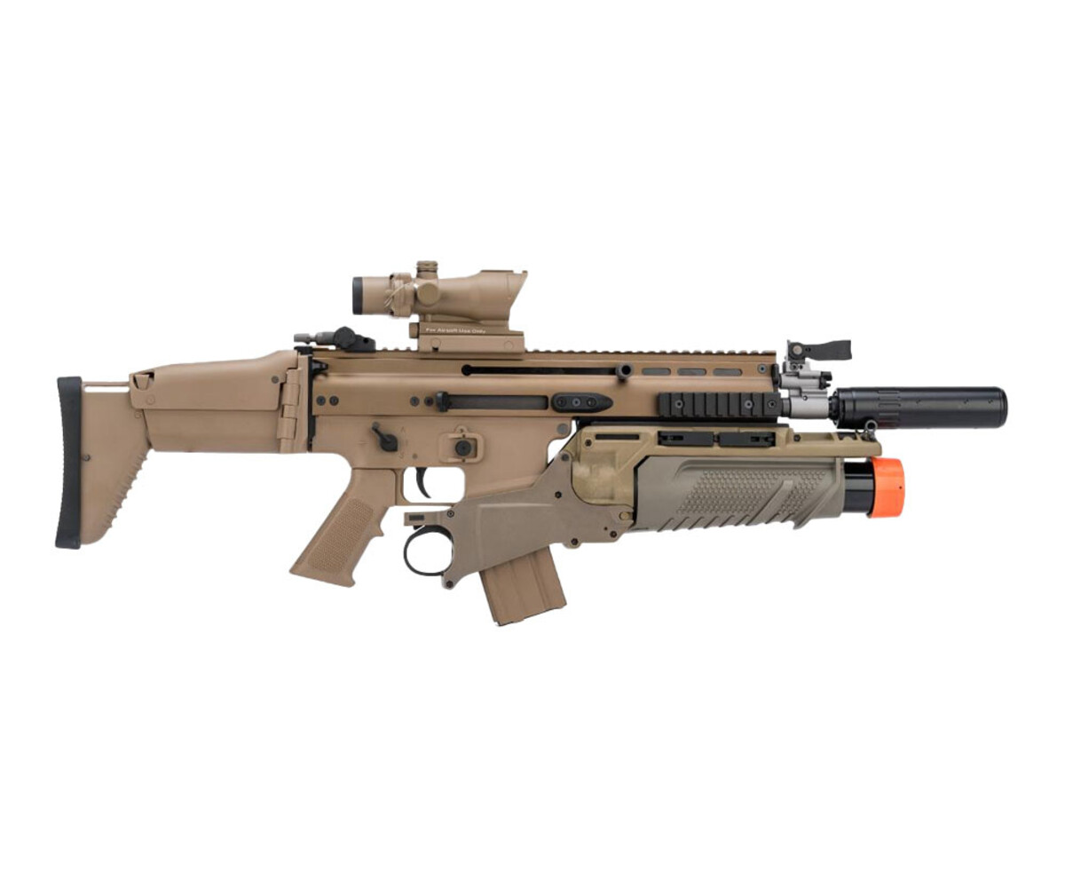 Cybergun SCAR-L w/EGLM Package, Tan; Airsoft Electric Rifle (AEG) with Grenade Launcher