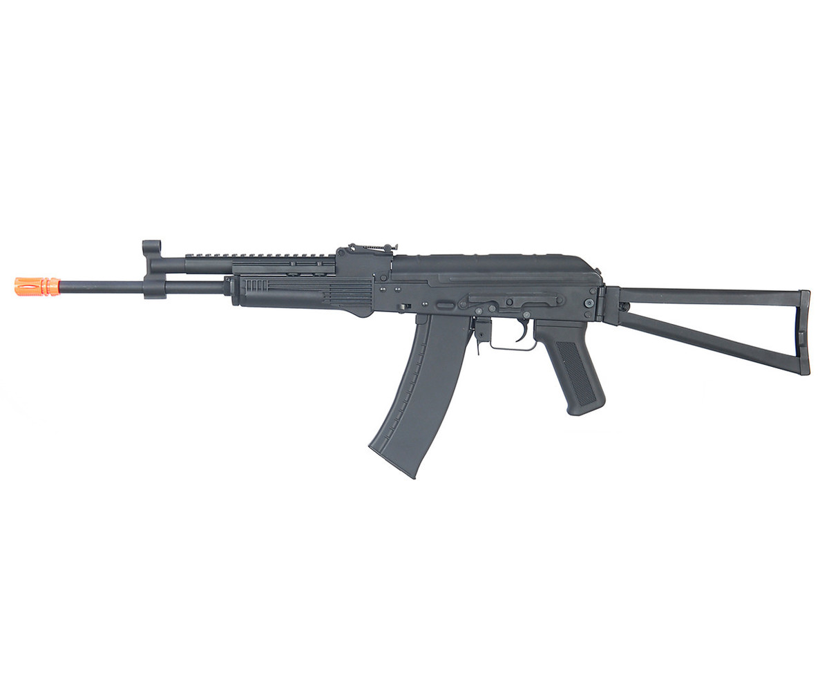 CYMA is known for making excellent AK's. The CYMA AK74 features a full-length rifle assembly but with the exception of a folding stock. The entire body and front assembly are constructed of metal for a more realistic weight and durability. The handguard is polymer but the rail is also constructed out of metal. Internally, this AK74 has been upgraded out of the box with metal bushings for more durability over plastic bushings. The included steel gears and polymer piston provide durability during gameplay. Overall an exceptional rifle and field ready out of the box! The CYMA AK74 is a great all-around rifle perfect for those who want an AK platform at a reasonable price with exceptional build quality.