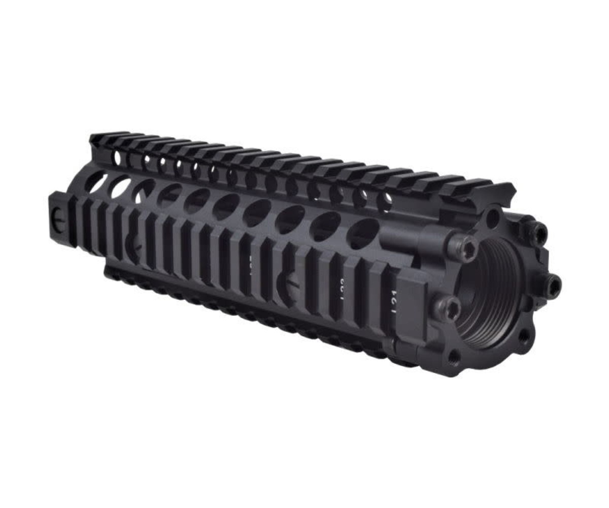 The Castellan MK18 RAS handguard is built from a very sturdy CNC aluminum material making it very rigid yet also lightweight. The RAS system turns your plain-looking standard AR/M4 into a rugged airsoft warfighter; giving you the ability to attach many accessories to aid your gameplay. If you are looking to do a certain special forces impression for a Mil-Sim loadout, the MK18 RAS 7” is the most recognizable loadout to go with.