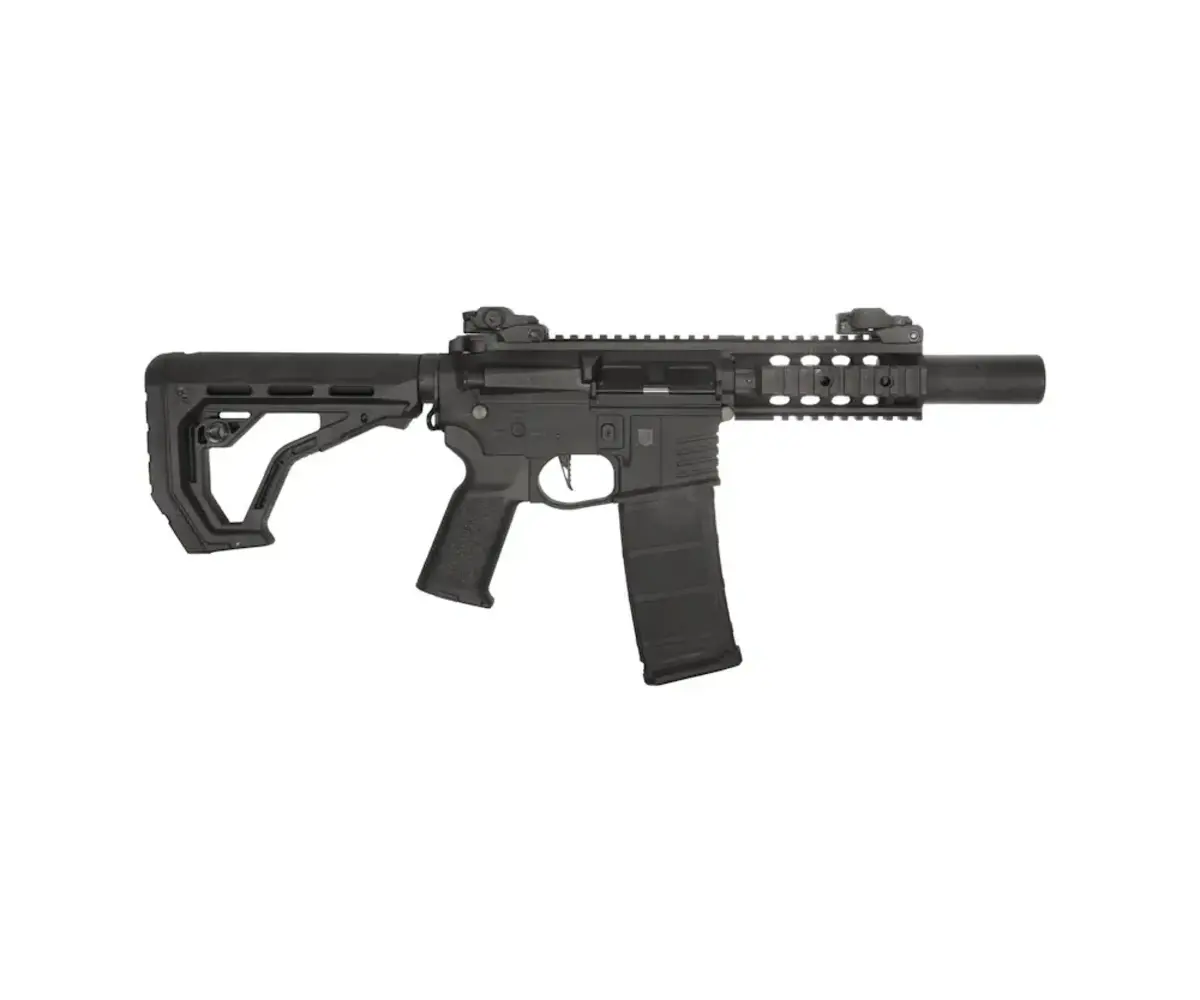 CNC-Machined Metal Components: The handguard, outer barrel, trigger, and trigger guard are precision CNC-machined aluminum, ensuring strength, reliability, and a premium feel. The mock suppressor is integrated into the RIS system, giving the rifle a compact yet aggressive profile.
