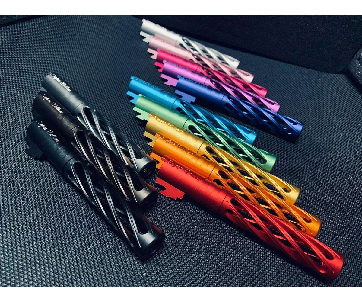 Upgrade your Hi Capa airsoft pistol with the Dr. Black 4.3 "Dinging" Aluminum Outer Barrel. Designed for lightweight performance and durability, this barrel not only enhances your pistol's aesthetics but also adds a unique feature to your shooting experience. With every shot fired, the barrel produces a satisfying "Dinging" noise, immersing you further into the action. The aggressive styling and availability in 13 different colors allow you to customize your pistol to your preferred look.