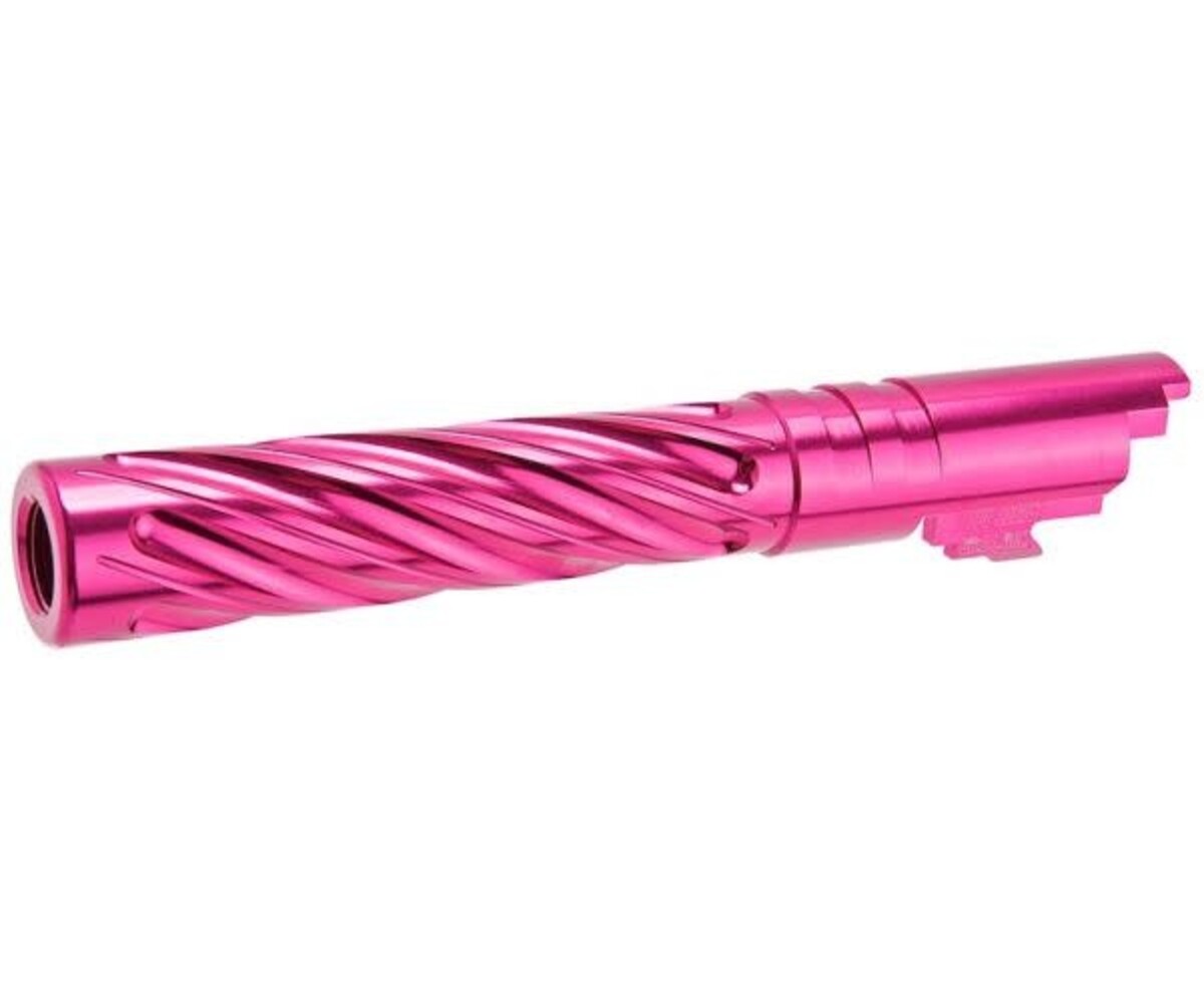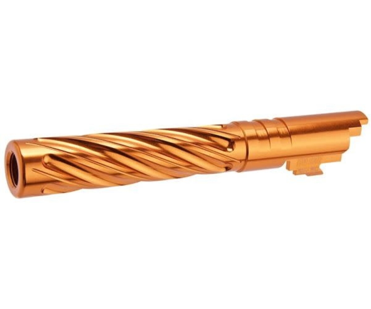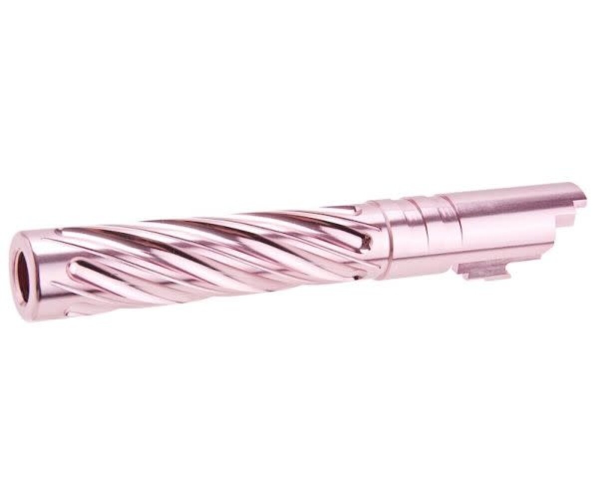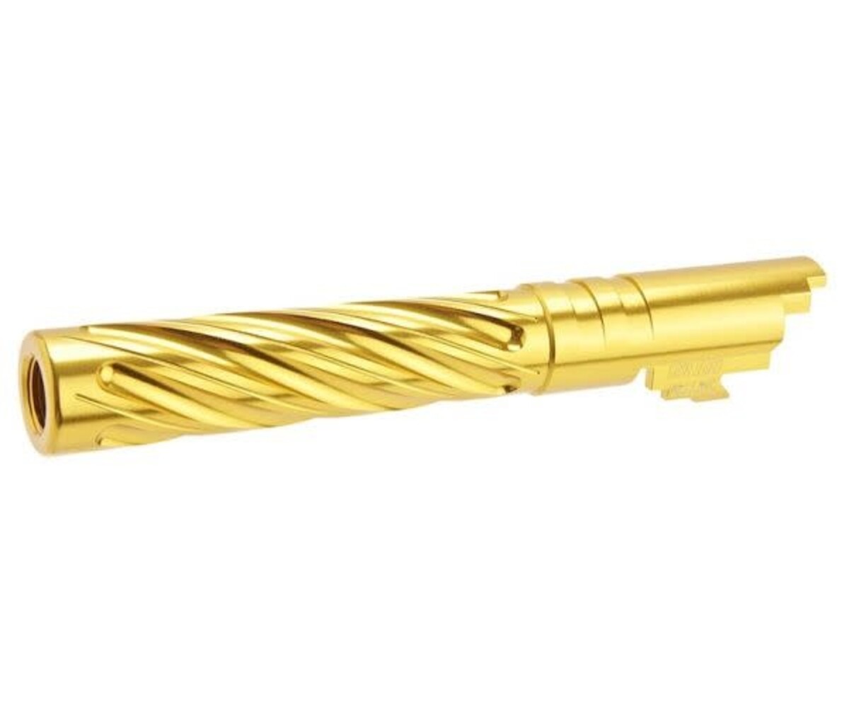 This outer barrel by Dr.Black is designed for the Tokyo Marui Hi Capa 5.1 GBB Airsoft pistol series. CNC machined using high-quality 6063 Aluminum and topped off with a durable anodized finish, it is incredibly lightweight yet robust. This outer barrel features their SS129 (Spiral Storm) design, which is basically a very clean fluted barrel design. The outer barrel is a simple drop-in installation and does not require any modification to install.