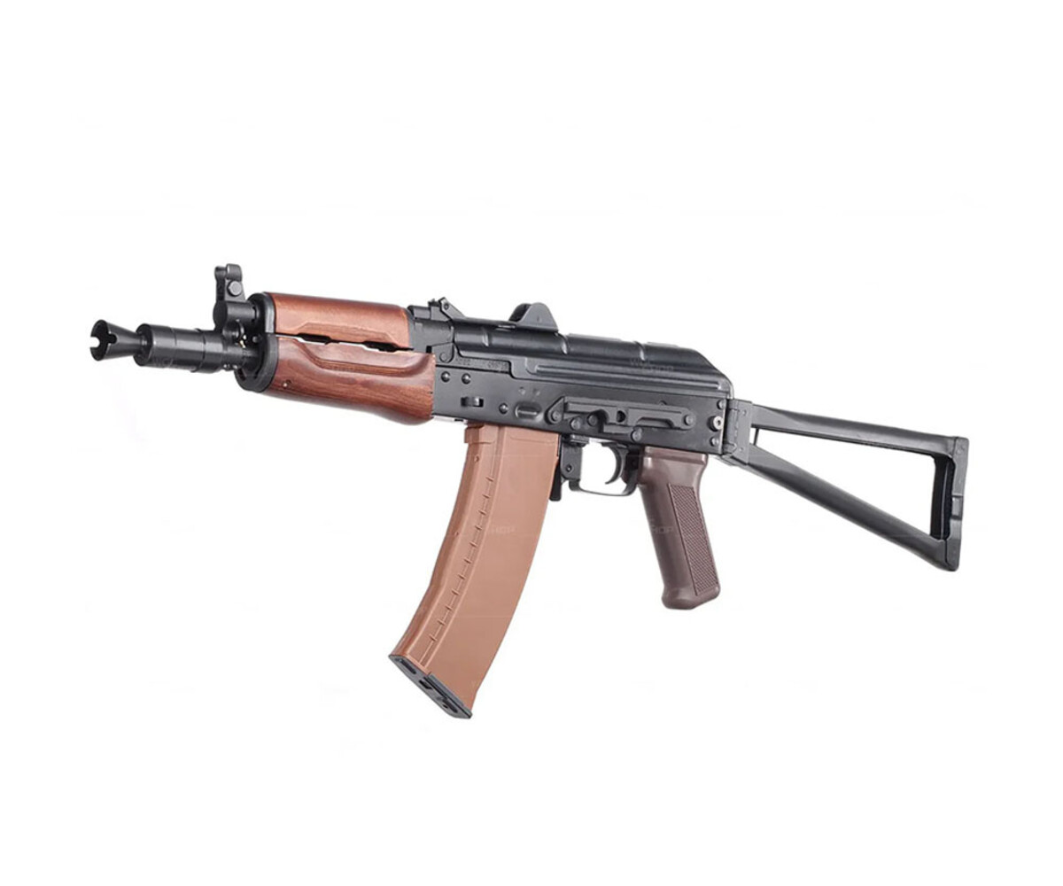 The E&L ELAKS74U AEG from the E-Platinum series is a premium AKS74UN replica built for serious players who demand performance, realism, and reliability. Crafted with a full steel body and real laminated wood furniture, this rifle doesn’t just look the part—it feels like the real deal. Whether you’re an AK purist or a player looking for a rugged, high-performing platform, this compact beast delivers on all fronts.