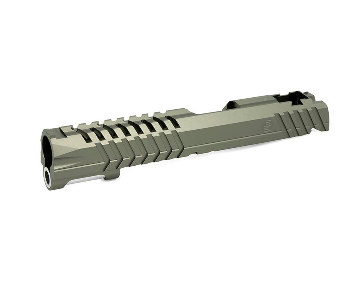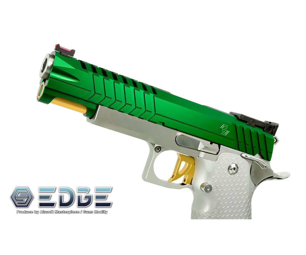 New lightweight EDGE series design by Airsoft Masterpiece and Guns Modify. Compatible with Tokyo Marui, Airsoft Masterpiece, and EDGE series Hi Capa slides. Ultra-lightweight build combined with early gas cutoff design gives you a lighter blowback action.