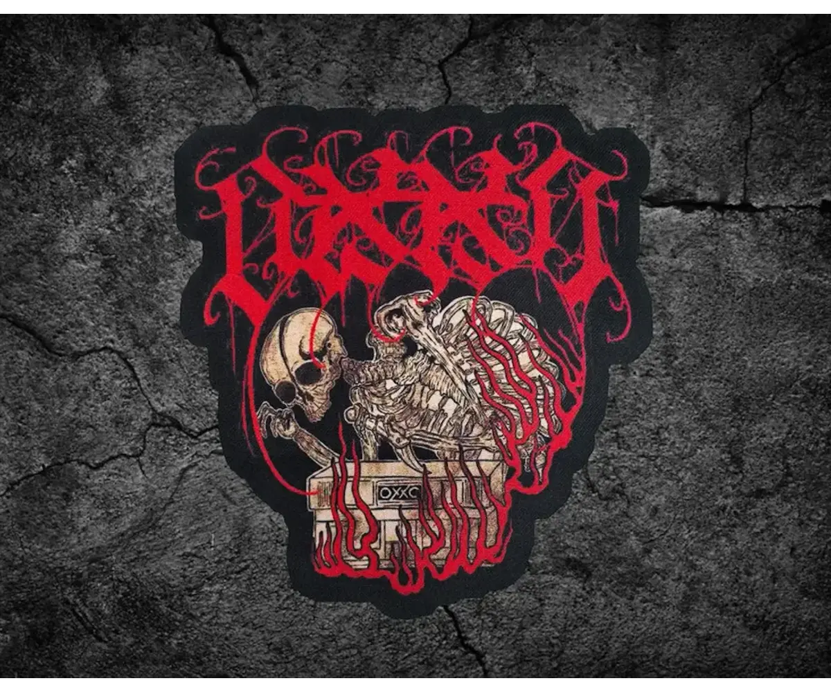 Key Feature or Design Note: Dive into the underworld of iconography with *OXXO Core*—a woven morale patch that fuses Mexican street spirit, Santa Muerte mysticism, and death metal chaos. Designed in collaboration with tattoo artist @horimukade, this 4" patch showcases a skeletal figure rising above the OXXO altar in a blaze of blood-red flames and spiked blackletter script. Whether you wear it in reverence, rebellion, or raw aesthetic power, this patch is an unapologetic display of cultural grit and artistic aggression. Made to be seen, feared, and collected.