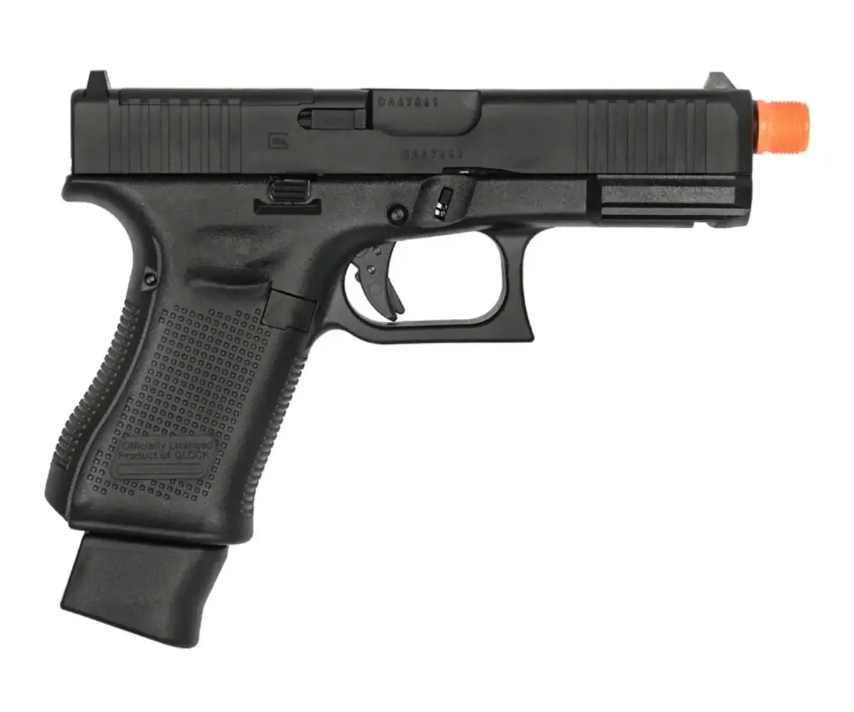 Elite Control and Functionality: True to its Gen 5 real-steel counterpart, this replica features a textured polymer grip, ambidextrous slide stop, and Glock accessory rail for lights and lasers. The drop-free 18-round CO2 magazine ensures reliable feeding, while the slide must be removed to access the adjustable hop-up—mirroring the disassembly style of the Tokyo Marui platform.