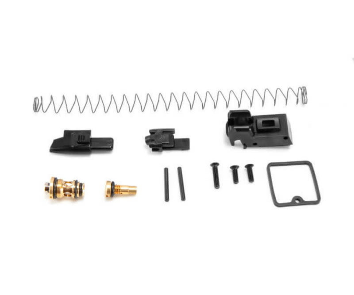 Package includes: Follower, Follower spring, Base Plate Follower, Feed Lips, Gas Route, Inlet Valve, O-Ring, Screws, Pins, Valve Release