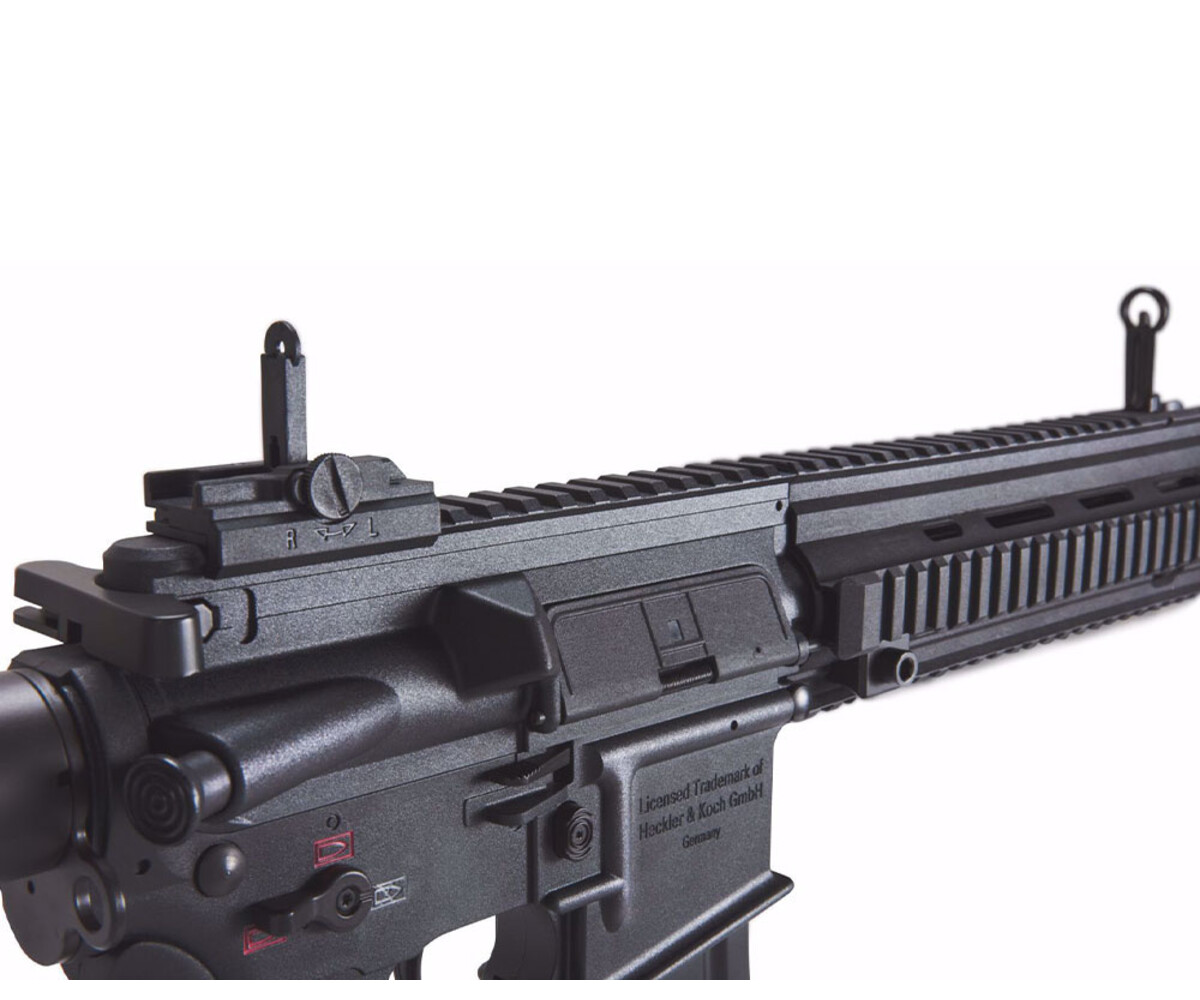 Ready to light up the field? The Elite Force H&K 416A5 Competition AEG brings together serious performance and built-in tracer tech so you can dominate day or night. Fully licensed by Heckler & Koch and built by Umarex, this 416A5 features a lightweight but tough polymer receiver, a quad Picatinny rail system for all your attachments, and an integrated EyeTrace LED tracer unit — no extra tracer unit required! Just load up your favorite Elite Force tracer BBs, flip the switch, and watch those rounds streak downrange.