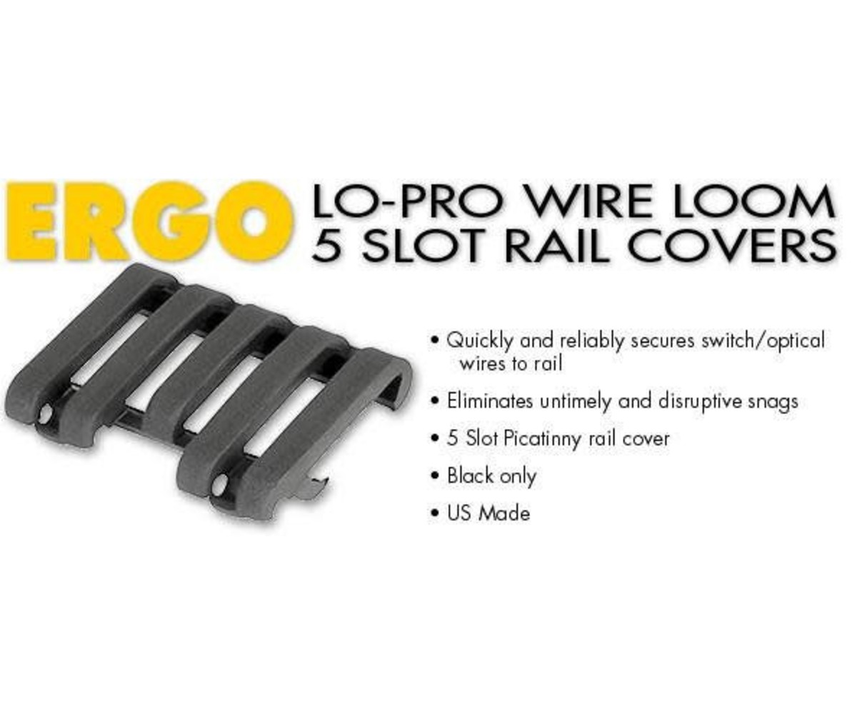Ergo’s 5-rail Panels are a modular one-piece insert that clips on any standard Picatinny rail. Unlike other rail covers, the Ergo can be mounted anywhere without the rearrangement of your accessories or trimming the covers! The Ergo Covers also feature non-slip rubber, and two small wiring clips on one side to guide any wiring for pressure switch lights!