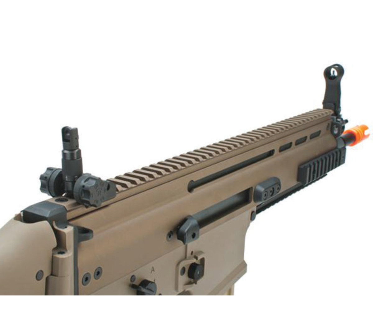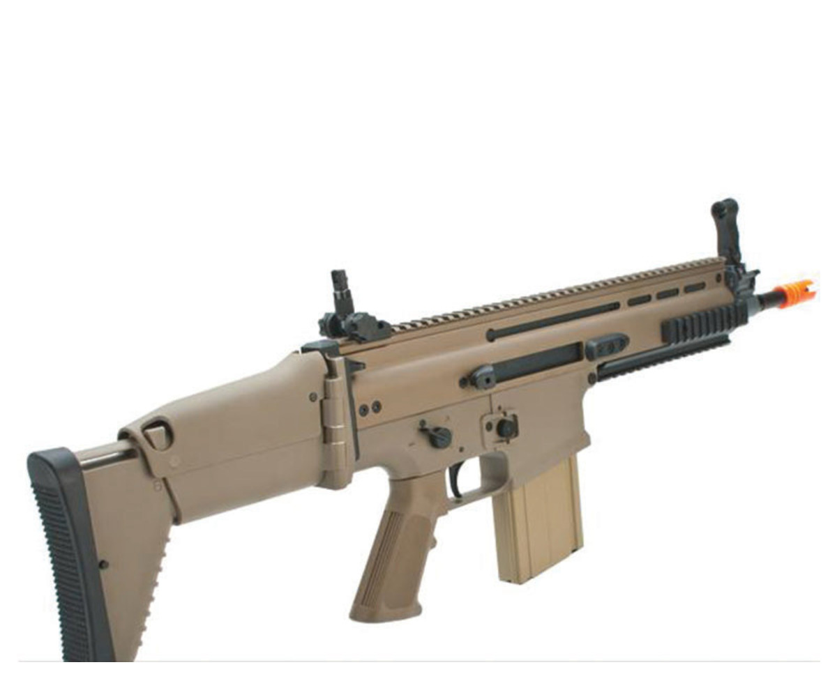 The FN SCAR-H CQC airsoft variant brings to the sport the same ergonomics as its real steel counterpart, with its 7.62 caliber style magazine modular Picatinny rail system and folding stock. The FN SCAR-H CQC features a V2 gearbox making it highly upgradeable, but it still performs great out of the box without upgrades. The FN SCAR-H CQC short barrel makes it easier to pass through tight spaces and keep your loadout light. This rifle is a poster gun in real steel and airsoft, with great performance accompanying it out of the box, you can wield this amazing rifle at your local airsoft field.