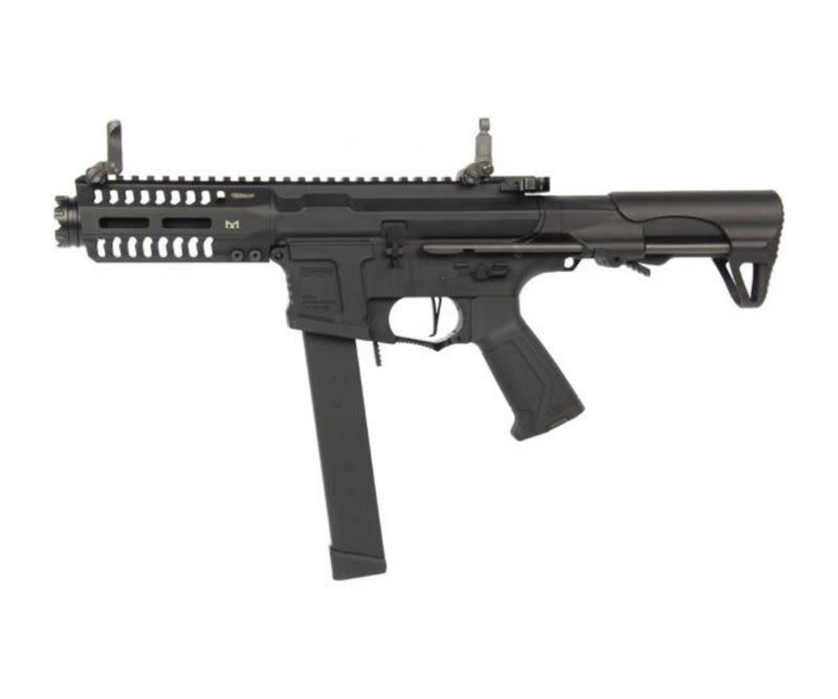 They ARP9 comes with a 5-inch M-lok handguard and flip-up sights, along with a two-position PDW stock. Internally G&G has included a new rotary hop-up, 25k motor and G&G's ETU for fast semi-auto and MOSFET protection