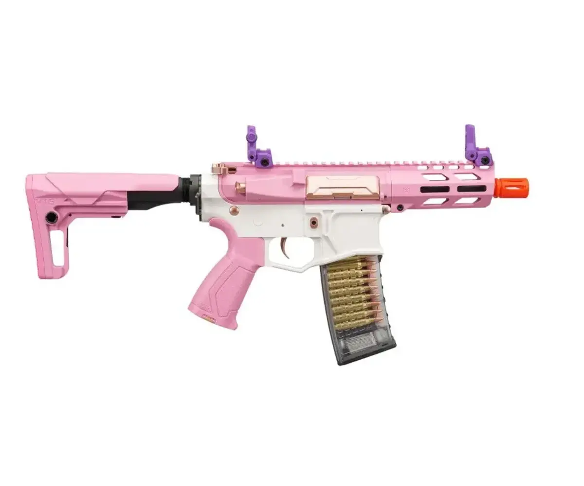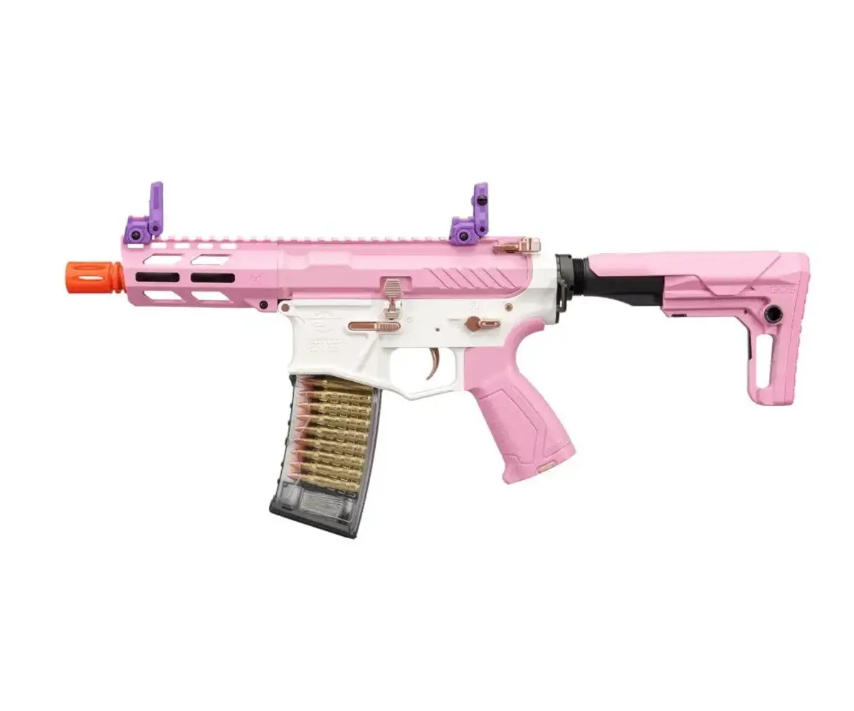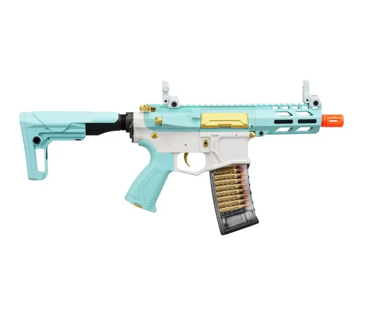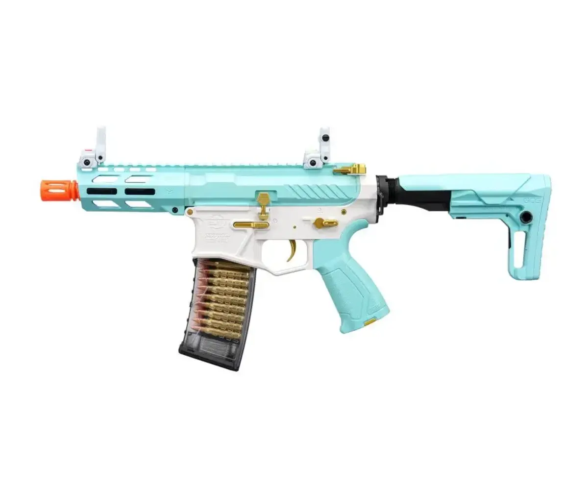 The G&G CM16 BATTO CQB is a compact, modern electric airsoft rifle designed for close-quarters dominance. Built with a reinforced polymer receiver and a short 128mm inner barrel, this rifle balances lightweight handling with reliable performance. Featuring G&G’s Version 2 MIG gearbox, ambidextrous controls, and a quick-change spring system, the BATTO CQB is a versatile and beginner-friendly platform that still offers plenty of room for upgrades. If you’re looking for a rugged, budget-friendly CQB AEG with modern ergonomics—and standout color options—the CM16 BATTO delivers.