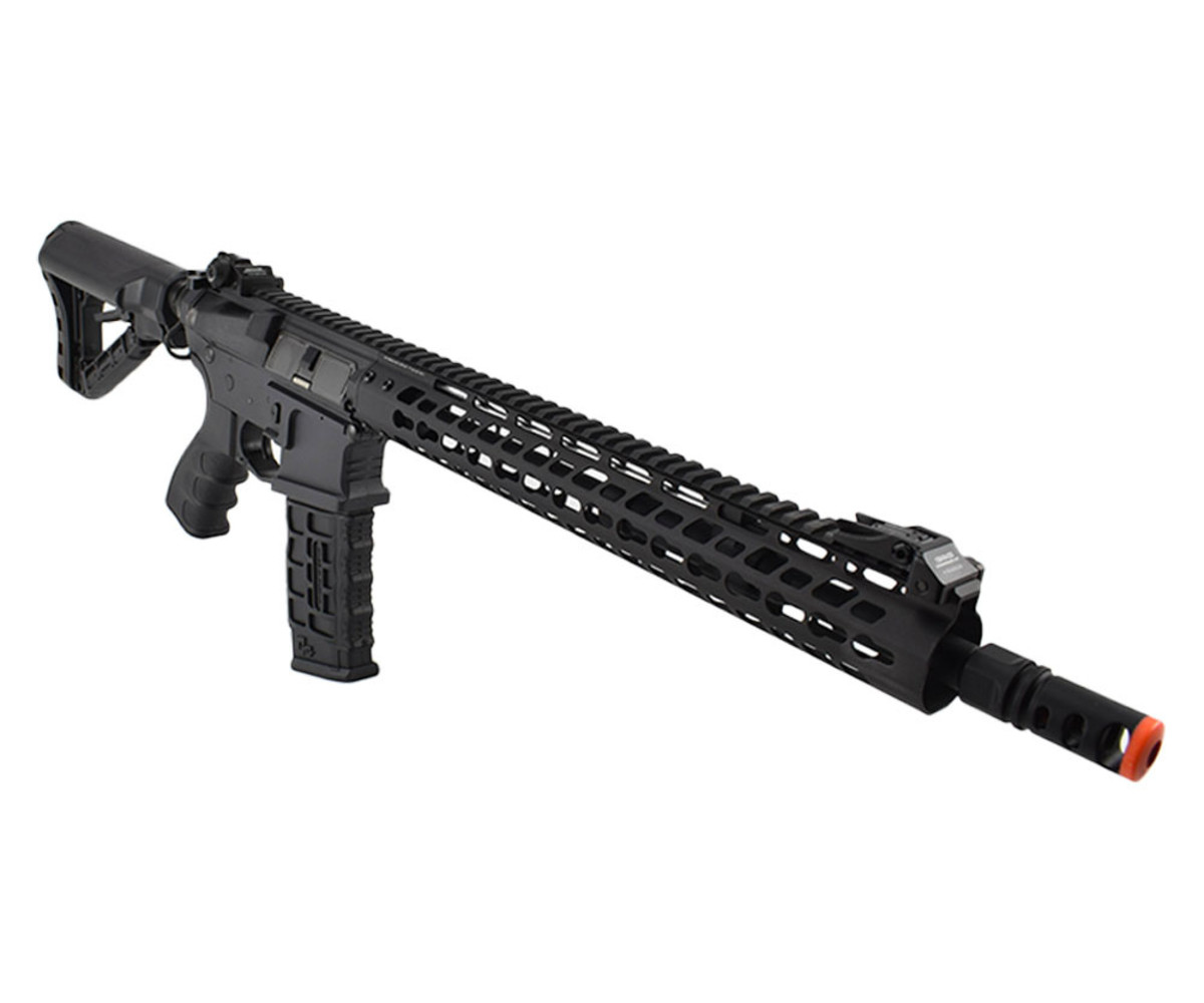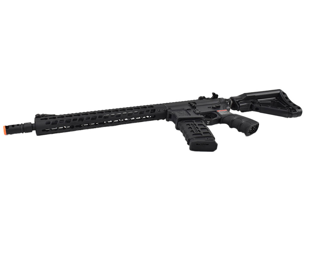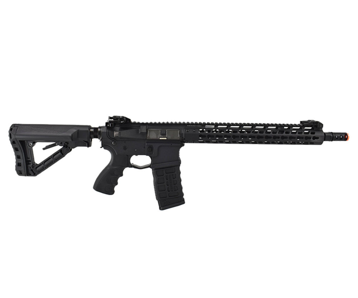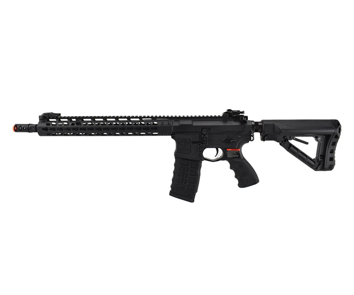The CM16 has an installed pre-programmed MOSFET chip that is able to stop batteries such as a Li-Po from over discharging and becoming damaged. The MOSFET is also programmable to shoot from full auto to 3-round burst. Additionally, G&G has installed an electronic trigger unit that increases response and assists in preventing trigger burns or locks in rapid semi-auto firing. Look no further for a high quality airsoft gun that fits your needs.