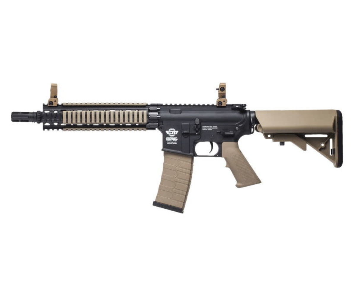 The Combat Machine CM18 delivers the highly desirable, classic look of the Mk18, but without the high price and weight. Featuring the legendary Combat Machine system, the CM18 is rugged and functional. Its light weight is couple with all the desirable features of a combat airsoft gun, making it perfect for beginners, young players, and veterans.