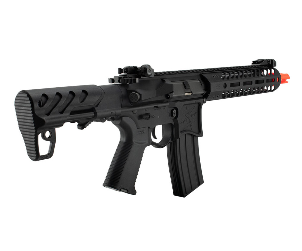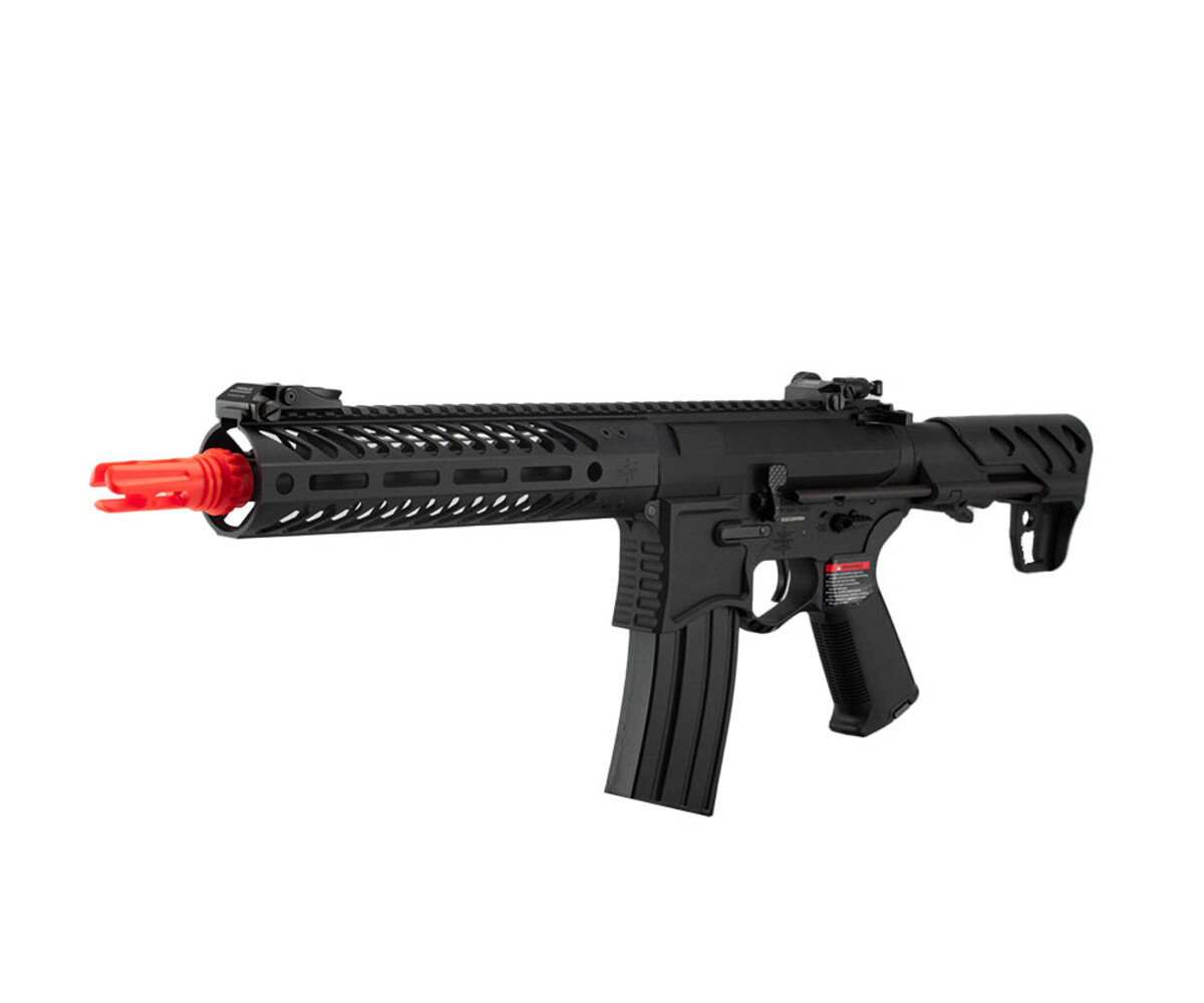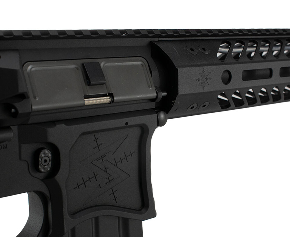 The G&G EMG Seekins Precision SBR8 features a 9" M-LOK rail system, allowing you to customize and attach accessories for enhanced versatility. Its robust construction incorporates a combination of metal, polymer, and brass, ensuring durability and reliability in intense airsoft battles. Equipped with a Version 2 Gearbox, this rifle offers smooth and consistent firing performance, making it suitable for both experienced players and newcomers.