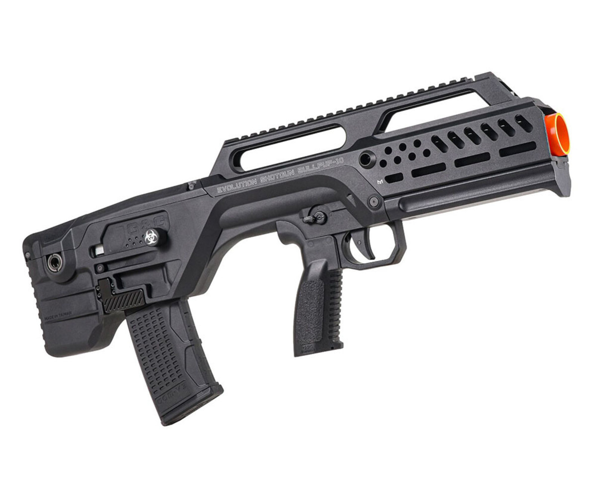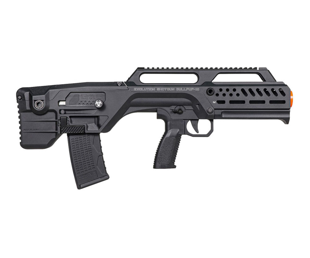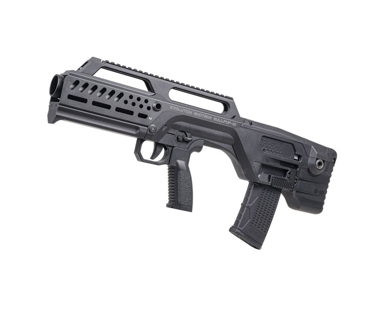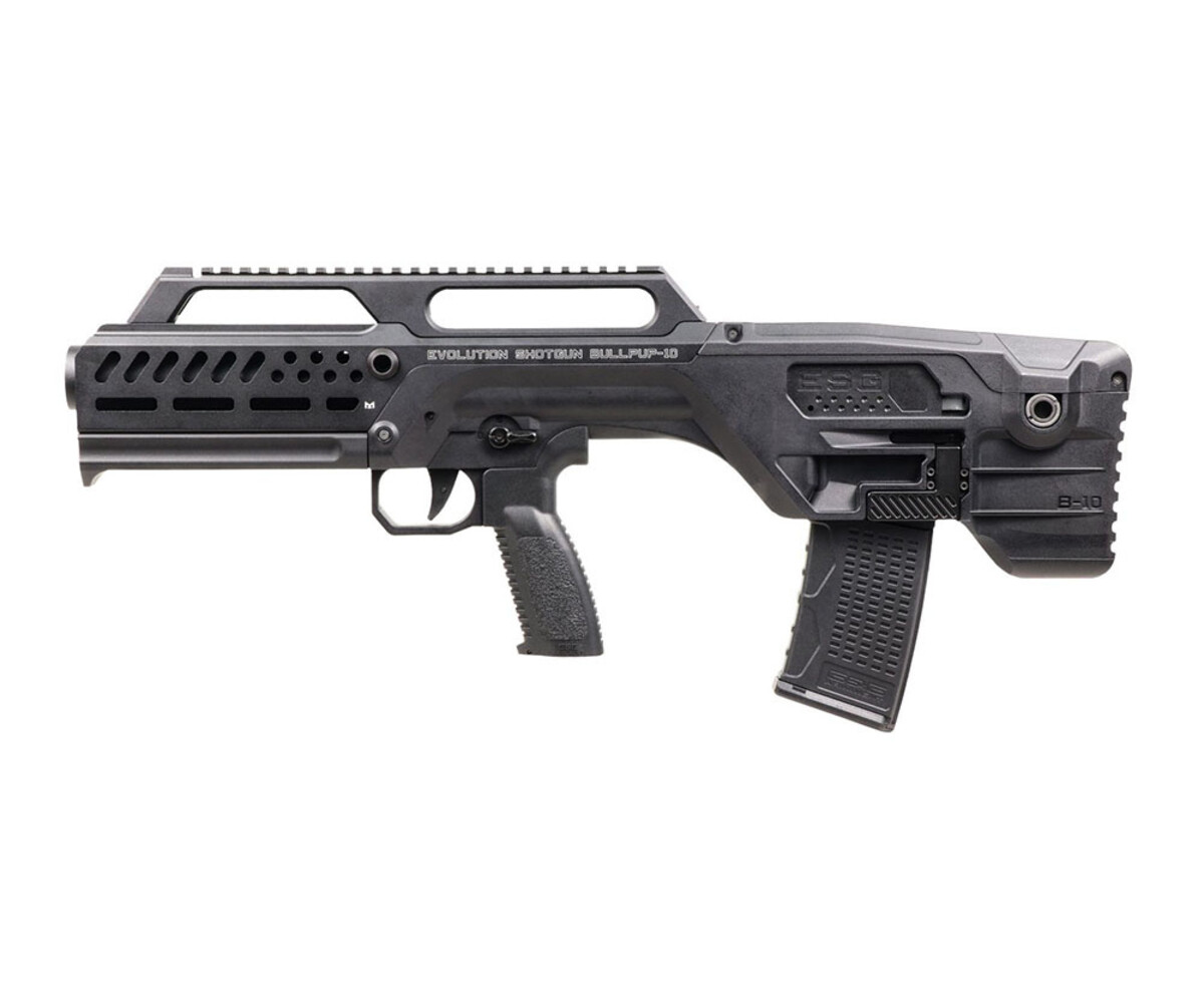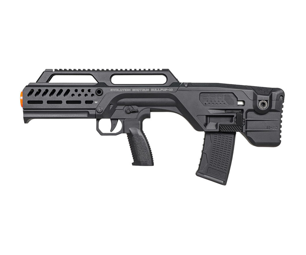 The G&G ESG B-10 Evolution Shotgun Bullpup-10 is a compact, gas-powered semi-automatic shotgun designed for high-intensity CQB skirmishes. Featuring a unique bullpup layout with an internal gas reservoir, this shotgun combines realistic ergonomics with practical performance. Its ability to use standard AEG M4 magazines sets it apart from traditional gas shotguns, giving players unmatched flexibility in both loadouts and reloading speed.