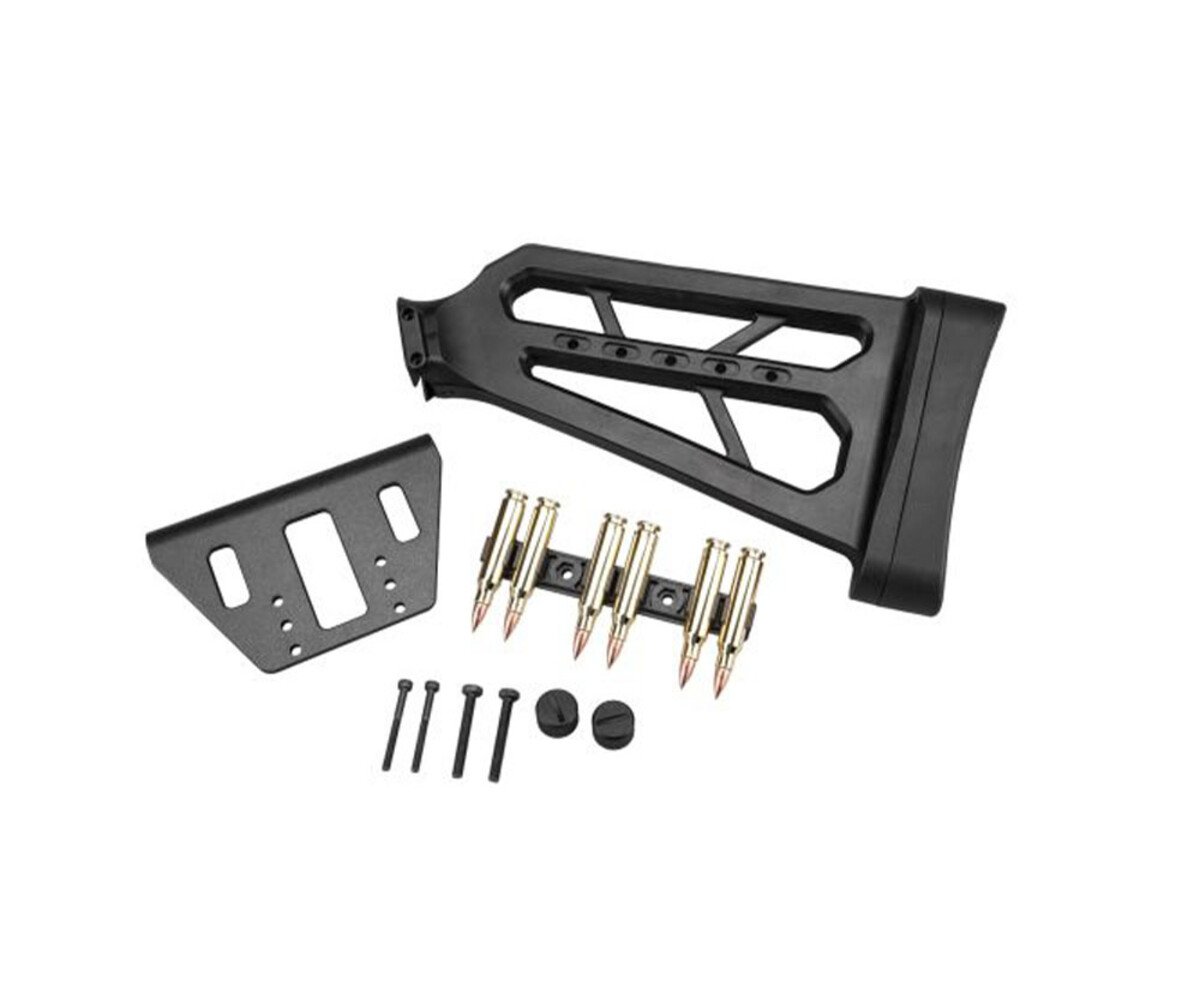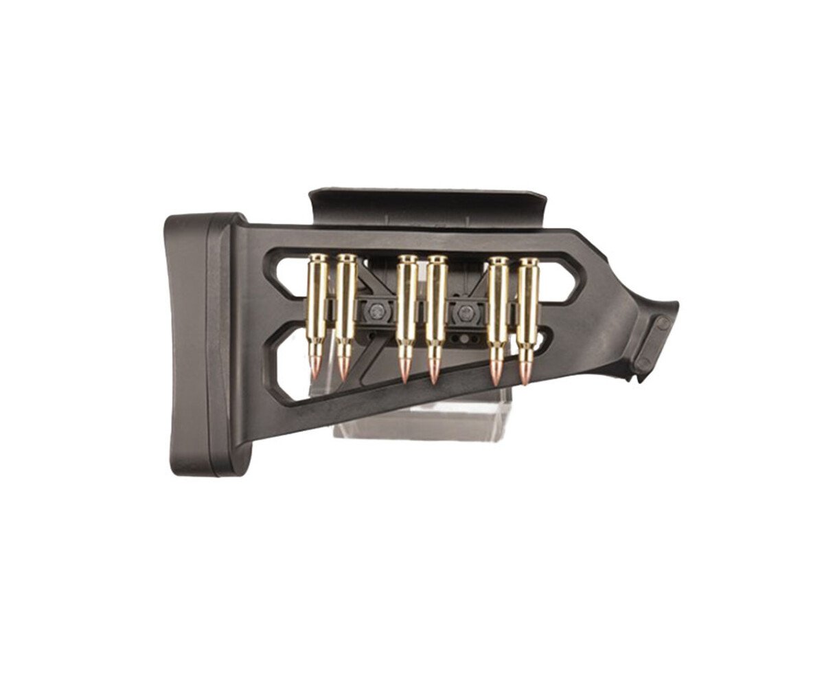 Included Accessories: Stock mounting bolts, cheek riser, mock rounds, cheek riser bolts, and thumb screws