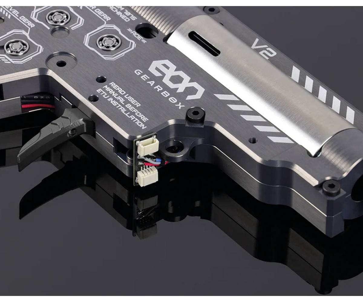 EON Complete V2 Gearbox with TITAN II Bluetooth® includes top-notch internal components. GATE analyzed and gathered the most advanced technologies available for AEGs and constructed the top-class gearbox, with no savings on parts. Instead of thinking about tuning, now you can obtain a ready-to-use, complete gearbox with a warranty at a fair price. Over a million shots fired to build the best and most reliable high-end gearbox.
