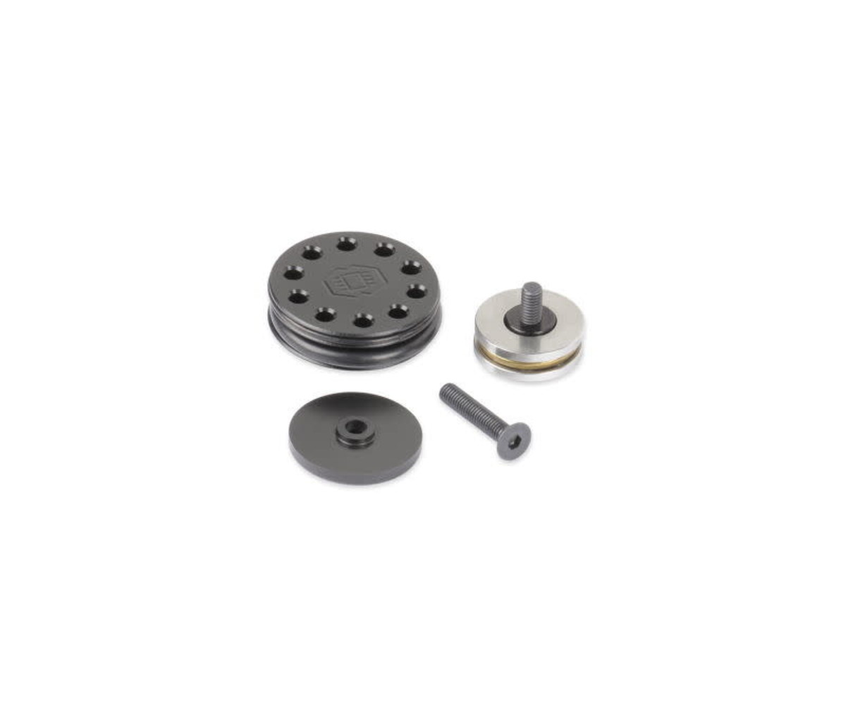 The piston head is designed for the most demanding DSG and speed builds, helping achieve the best results and overcome limits. Thanks to the use of 10 vents, airflow significantly increases improving sealing. The ultra-lightweight POM material together with CNC machining ensures repeatability of shots, perfect head-to-cylinder seal, high RPS ratio, and eliminates FPS drops. The adjustable AOE makes it essential for every speed build.