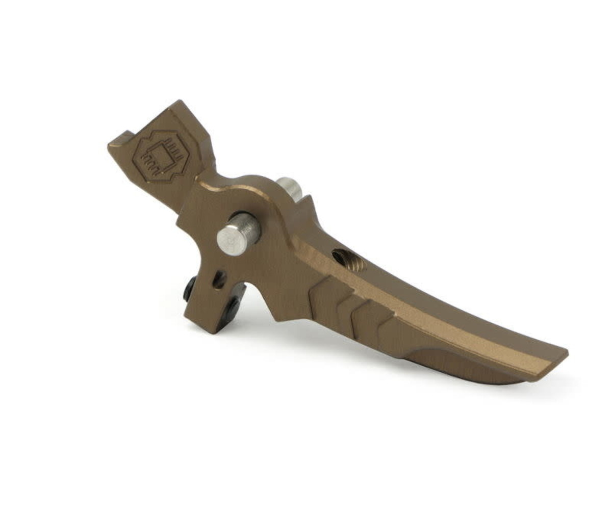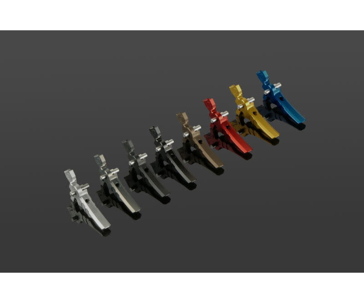 An adjustable speed trigger designed especially for pros using TITAN V2 for the greatest accuracy and overcoming limits. Enjoy simple and precise hair-trigger adjustment on any sensor you want. Shoot faster thanks to over-travel control. Make the most of the compatibility with any gearbox wherever standard V2 trigger fits, including HPA. Select from multiple shapes and colors to suit the style and type of your games. All of this with ultra-high quality of 7075 aircraft grade aluminum CNC machining.