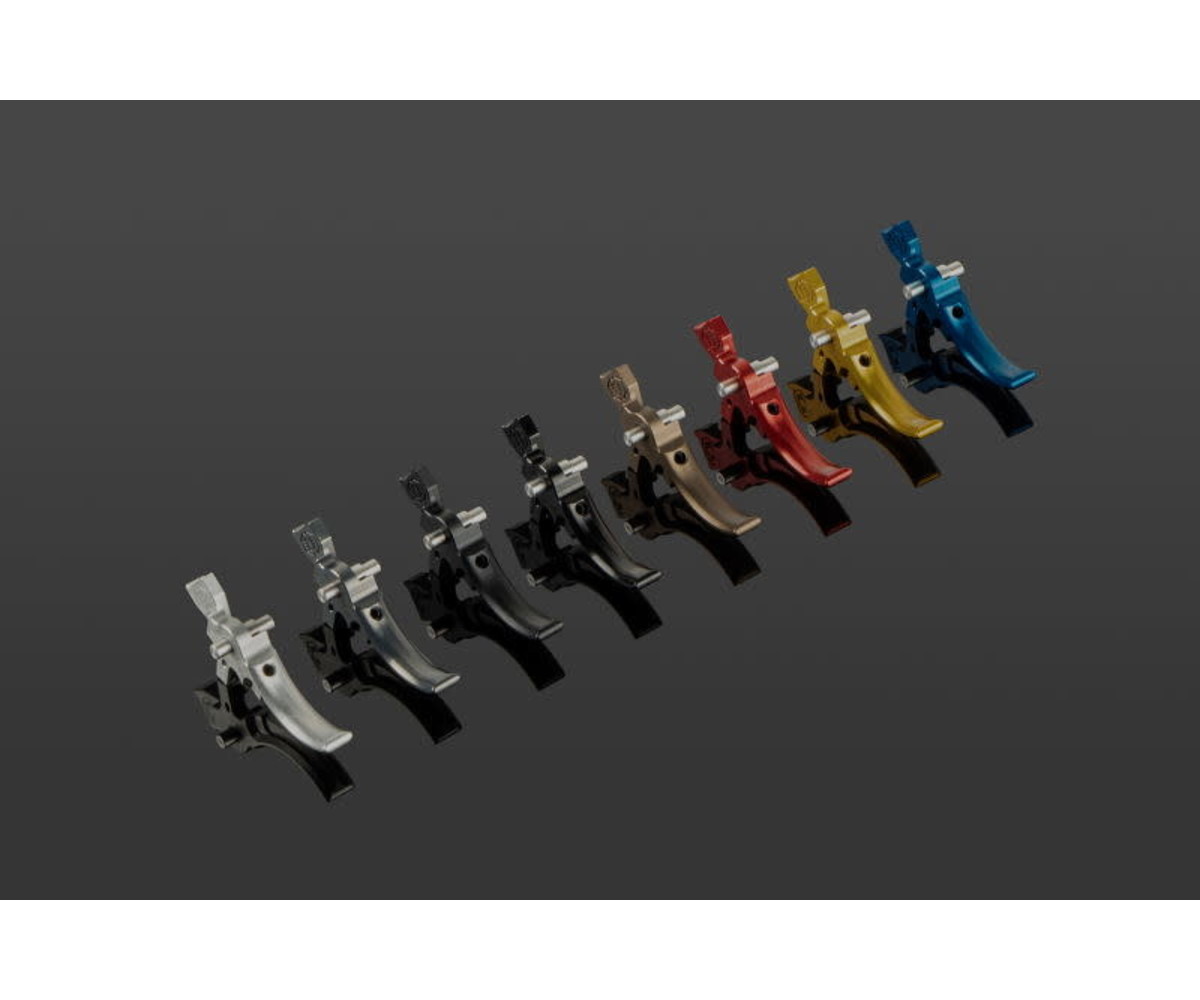 An adjustable speed trigger designed especially for pros using TITAN V2 for the greatest accuracy and overcoming the limits. Enjoy simple and precise hair-trigger adjustment on any sensor you want. Shoot faster thanks to over-travel control. Make the most of the compatibility with any gearbox wherever standard V2 trigger fits, including HPA. Select from multiple shapes and colors to suit the style and type of your games. All of this with ultra-high quality of 7075 aircraft grade aluminum CNC machining.