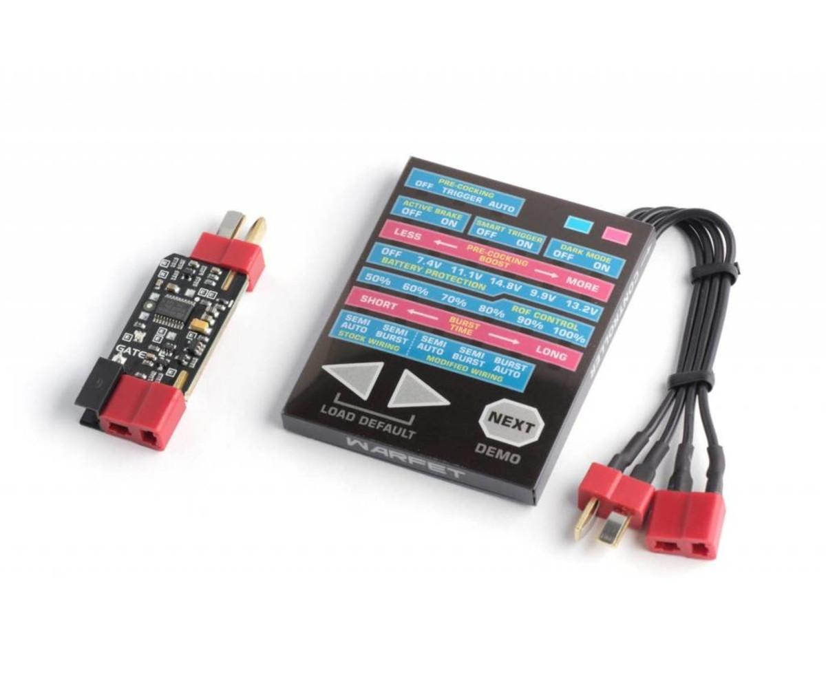 WARFET is Gate's most advanced AEG Control System. It has 20 functions and almost 6 million possible configurations. The outstanding Tactical Programming Card provides you with very easy access to the WARFET Power Module settings.