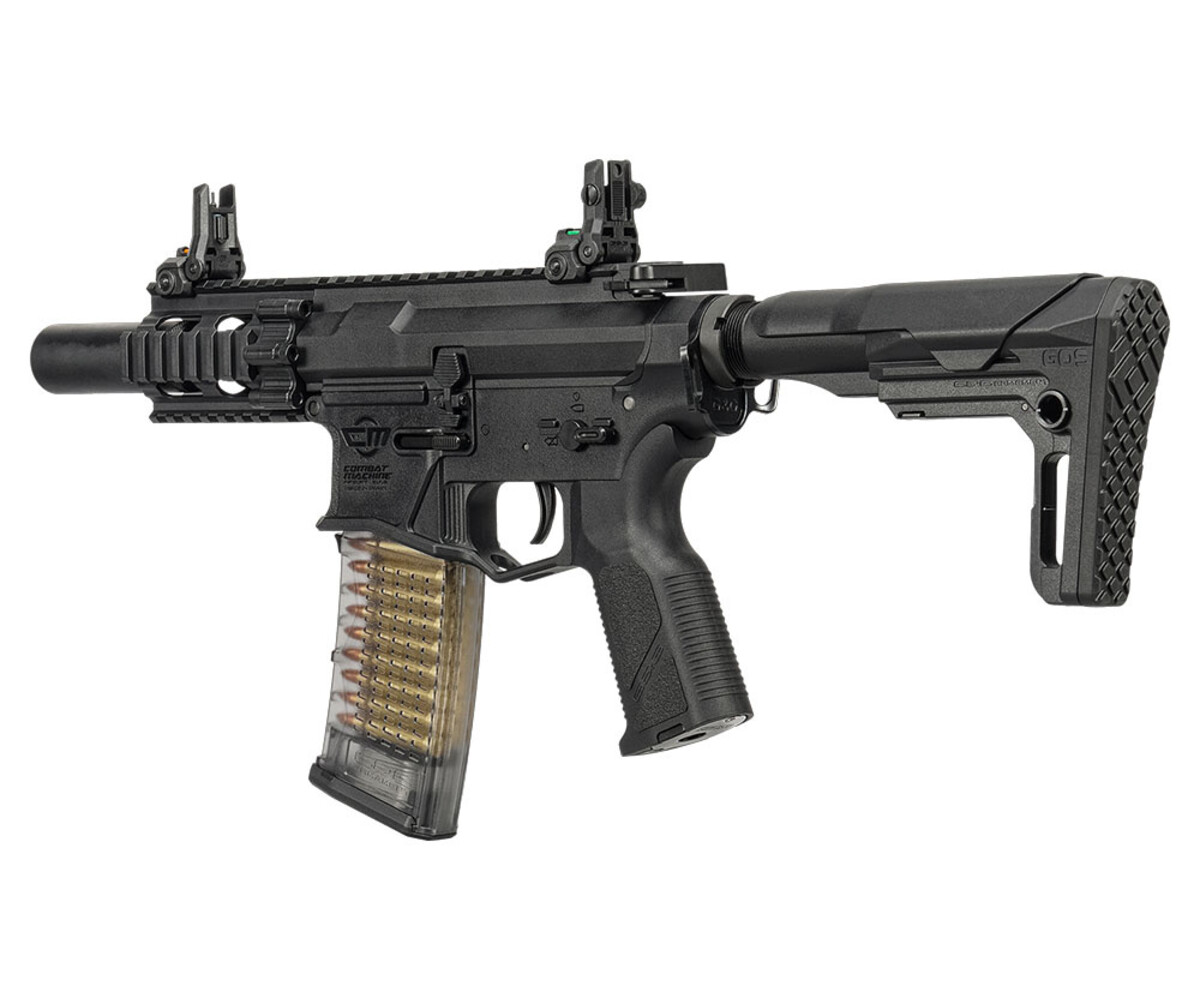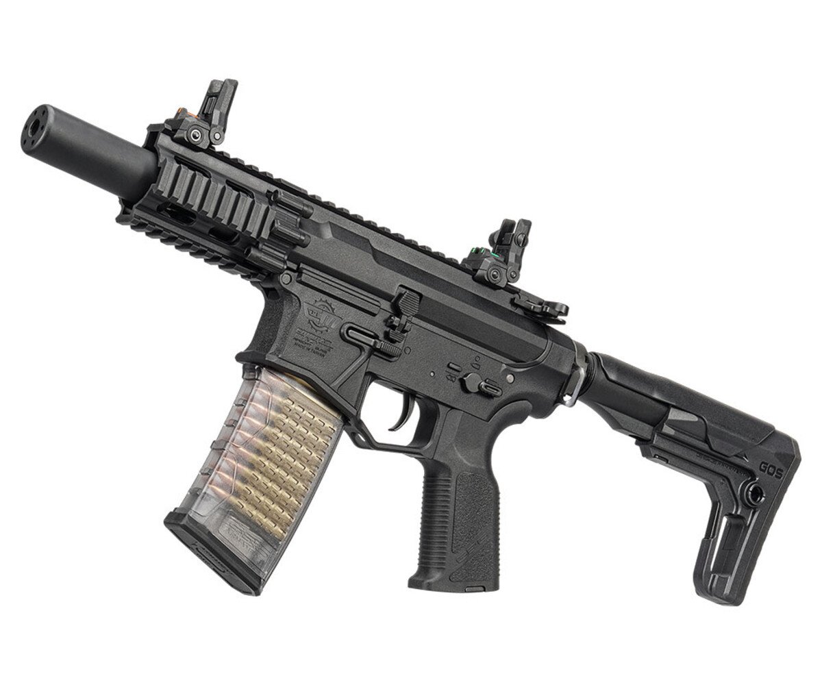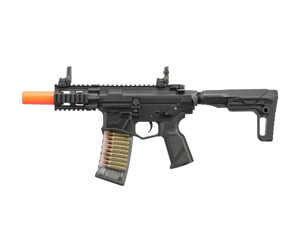The G&G CM16 GMS SBR is a compact electric airsoft rifle designed for players who need speed, maneuverability, and advanced electronics in one lightweight package. Built around a reinforced polymer receiver with a short-barrel SBR layout, this rifle excels in CQB (Close Quarters Battle) environments where fast handling makes the difference. At its core is G&G’s MIG Version 2 gearbox with a factory-installed GATE ASTER V2 SE MOSFET, delivering programmable trigger response, internal safety protections, and long-term durability. With its quick-change spring system, ambidextrous controls, and compact GOS-V16 stock, the CM16 GMS SBR offers serious performance at a budget-friendly price point.