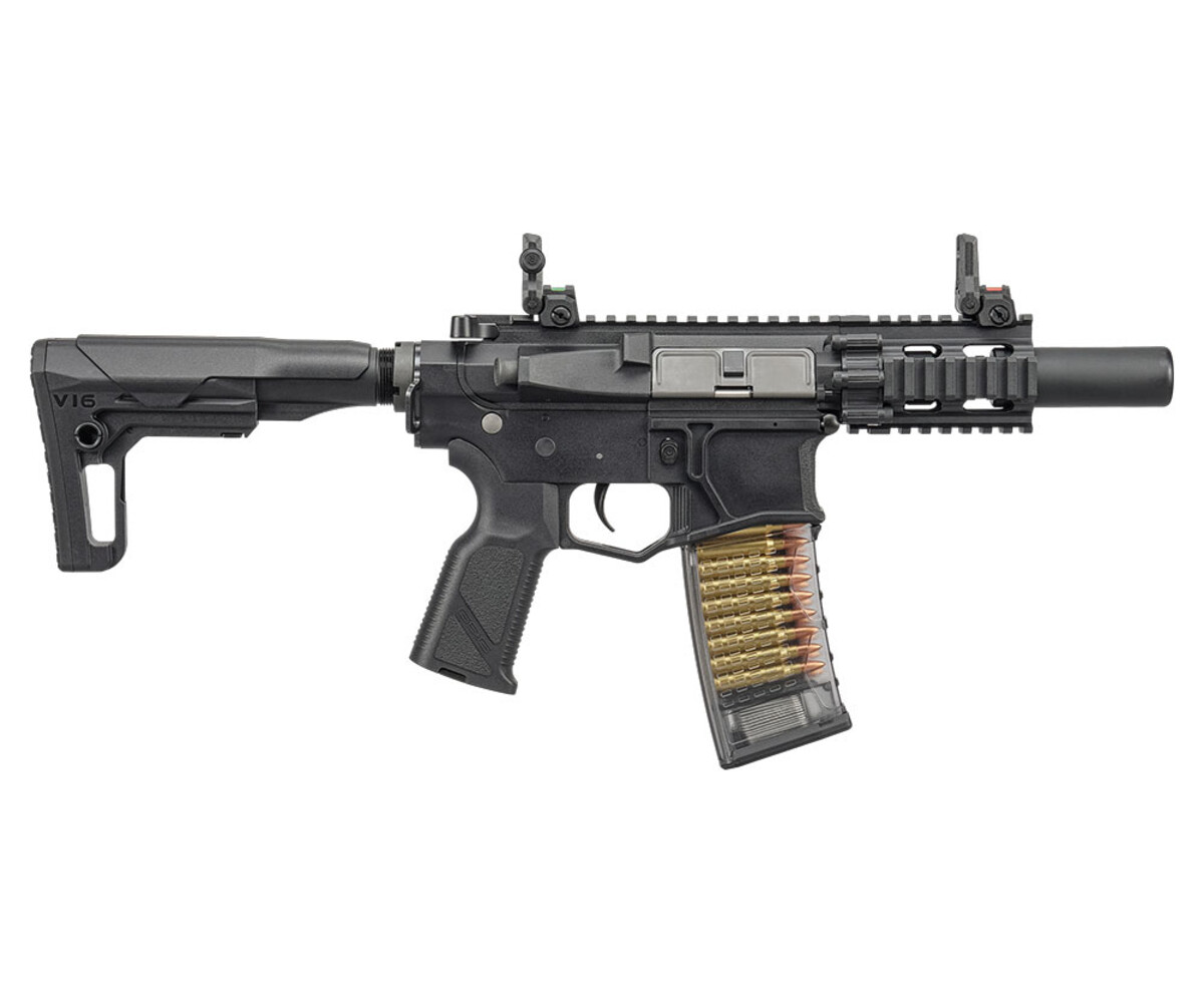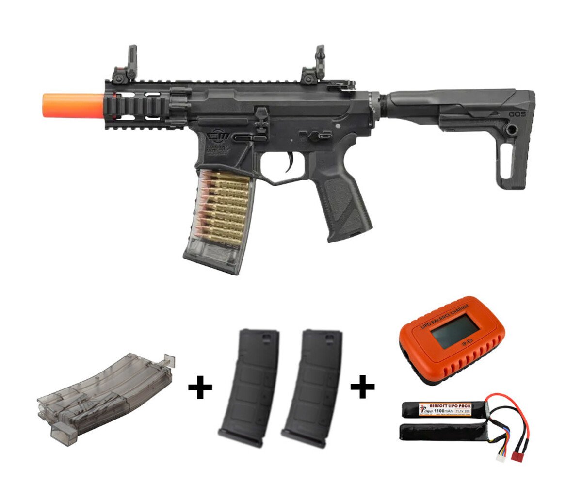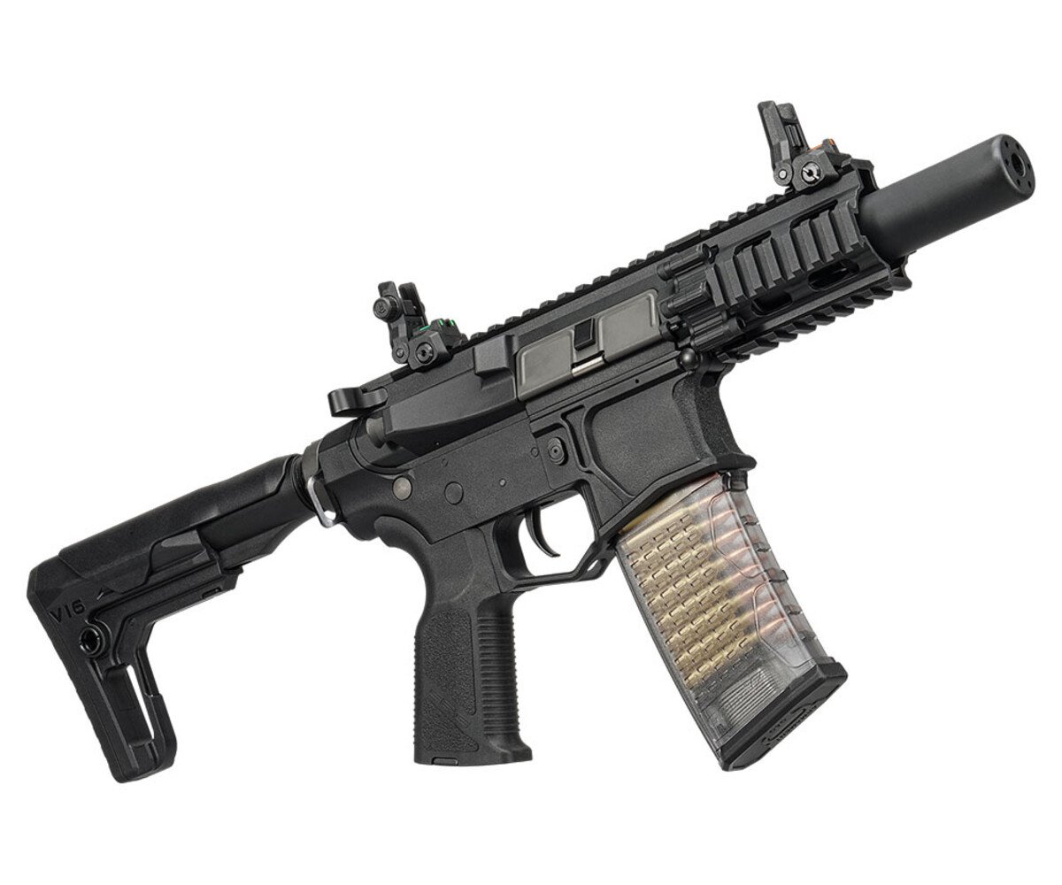 The G&G CM16 GMS SBR is a compact electric airsoft rifle designed for players who need speed, maneuverability, and advanced electronics in one lightweight package. Built around a reinforced polymer receiver with a short-barrel SBR layout, this rifle excels in CQB (Close Quarters Battle) environments where fast handling makes the difference. At its core is G&G’s MIG Version 2 gearbox with a factory-installed GATE ASTER V2 SE MOSFET, delivering programmable trigger response, internal safety protections, and long-term durability. With its quick-change spring system, ambidextrous controls, and compact GOS-V16 stock, the CM16 GMS SBR offers serious performance at a budget-friendly price point.