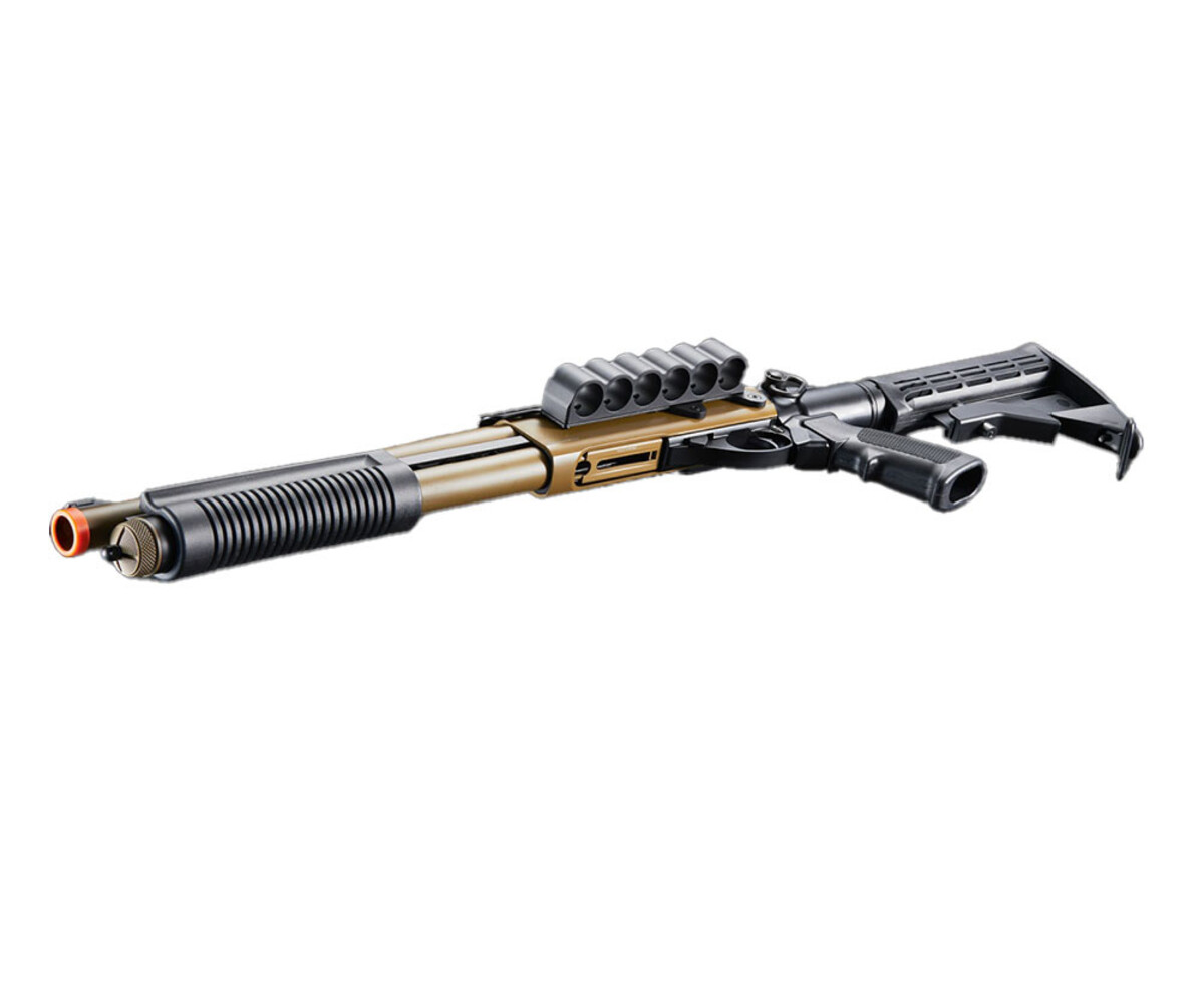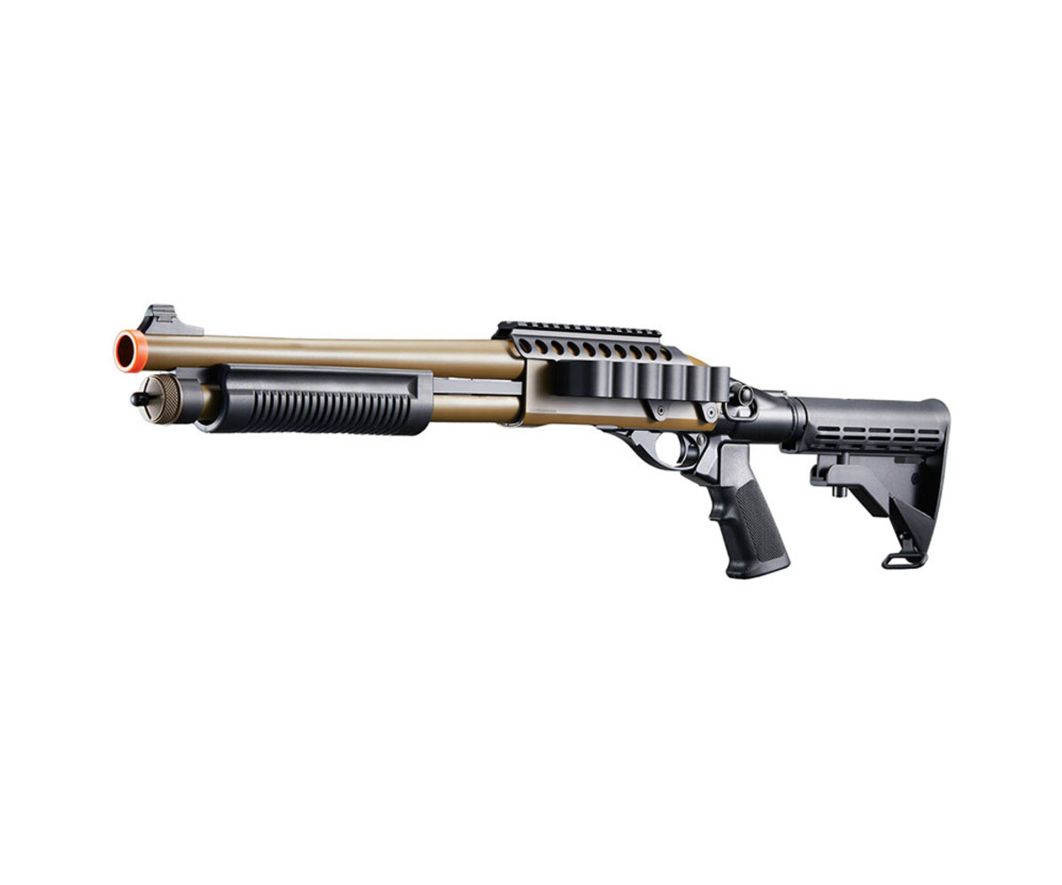 Golden Eagle Gas Airsoft Shotgun w/ Optic Rail & M4 Crane Stock - Tan