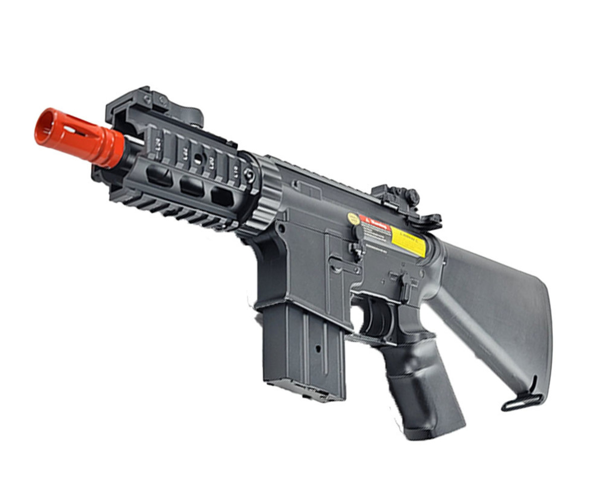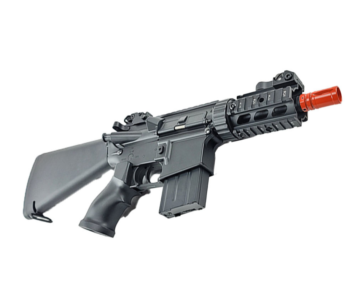 The Electric Golden Eagle Stubby Killer Airsoft CQB Gun is no exception to the quality Airsoft guns produced by JG. With a full stock and durable design this is sure to be a great addition to any soldiers Airsoft arsenal! It fires at 375 FPS and comes with a 170 round magazine giving you plenty of ammo, making sure you don't have to worry about reloading! This gun also includes an integrated rail system and a metal quad R.I.S hand guard system, allowing you to completely customize the look and versatility of this gun for whatever type of battle you are in! The GE M4 CQB Stubby Killer has a compact CQB design allowing you to use this gun in any type of combat or terrain! This awesome gun comes with Sample BBs, a rechargeable battery and a wall charger so you will be ready to go right out of the box! The GE Stubby Killer Airsoft CQB Gun is ready to take the Airsoft world by storm, so hurry and get yours today!