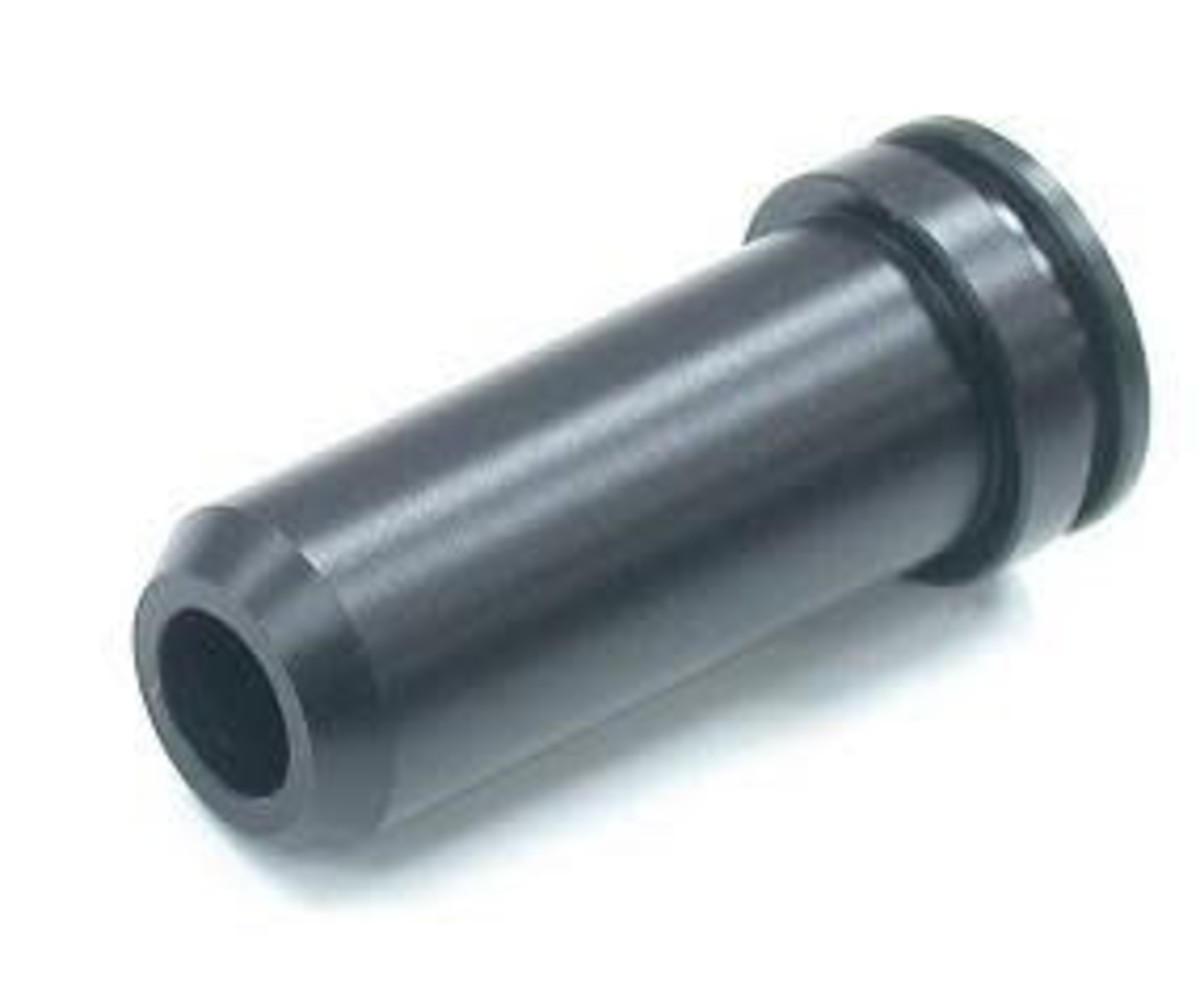 The Guarder P90 Air seal nozzle is a replacement polymer nozzle for Ver.6 P90 gearboxes. The nozzle length matches that of Tokyo Marui Spec P90 being 20.8mm. This nozzle also features an oil-tempered O-ring to help with the seal on the compression system and withstand any grease that may come its way.