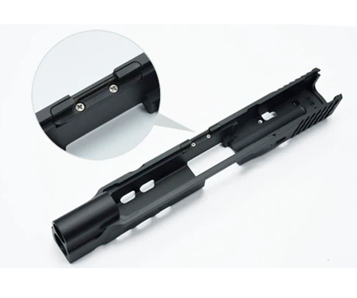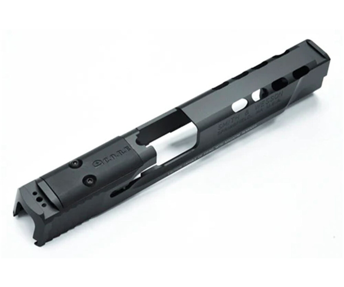 The Guarder Tokyo Marui M&P9L Aluminum CNC Slide offers an elite upgrade for your Tokyo Marui M&P9L PC Ported gas airsoft pistol, enhancing both performance and aesthetics. Crafted from CNC 6061 aluminum, this slide ensures durability while maintaining a lightweight profile. Say goodbye to the stock ABS plastic slide and welcome superior performance on the field.