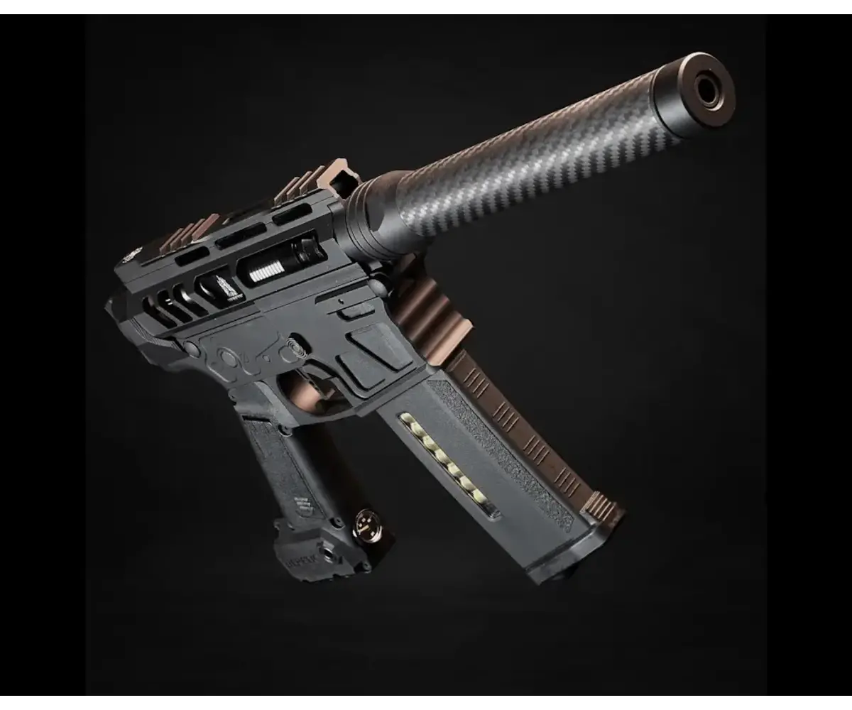 Speedsoft-Optimized Lightweight Build: The Heretic Labs Article II is precision-built around a skeletonized CNC billet aluminum MTW-spec receiver to reduce weight without compromising structural integrity. This makes it ideal for aggressive, high-speed indoor play where maneuverability is critical.