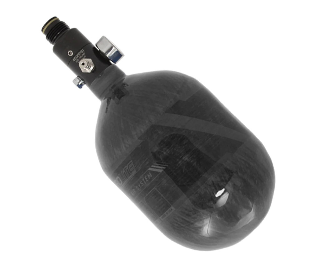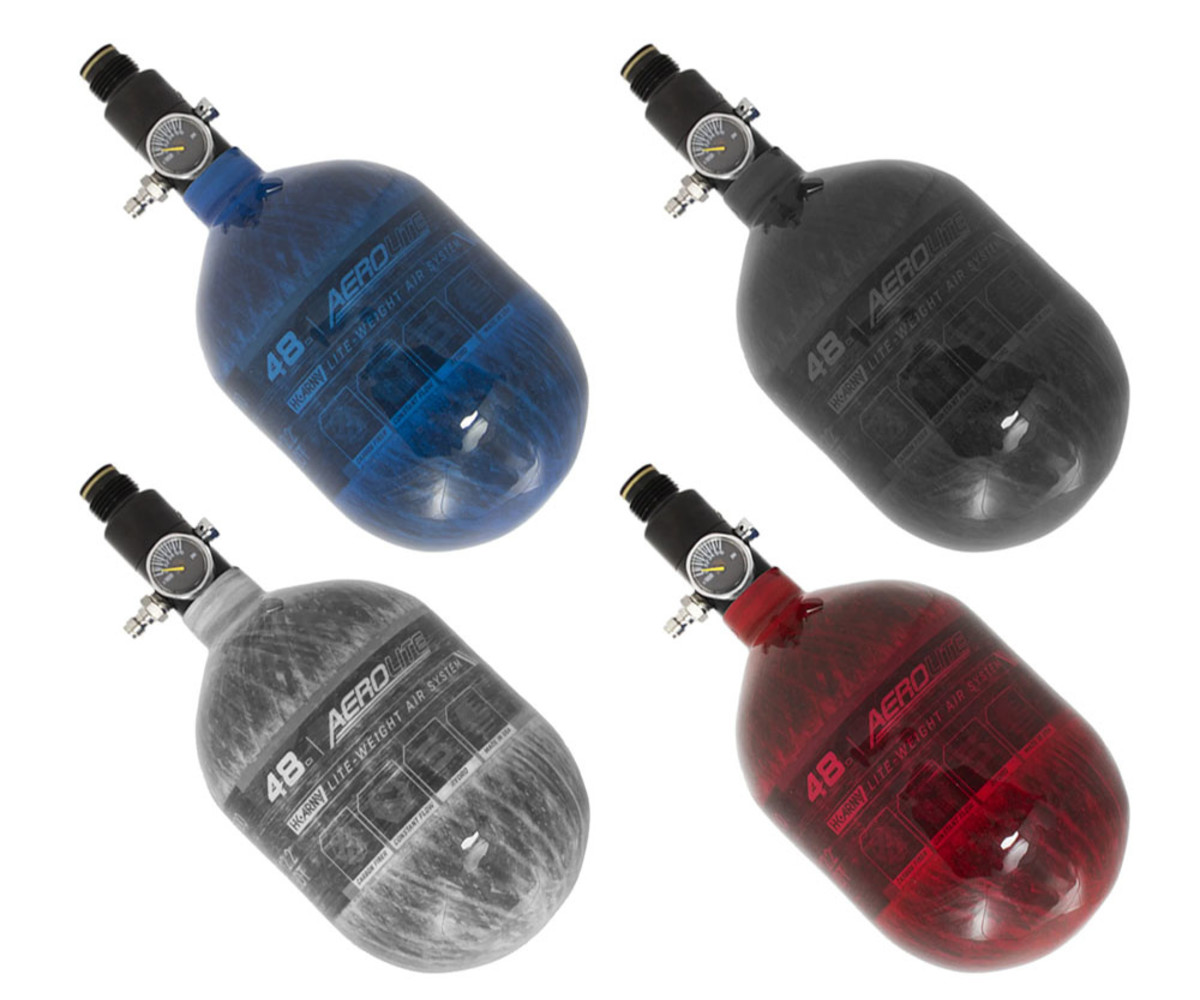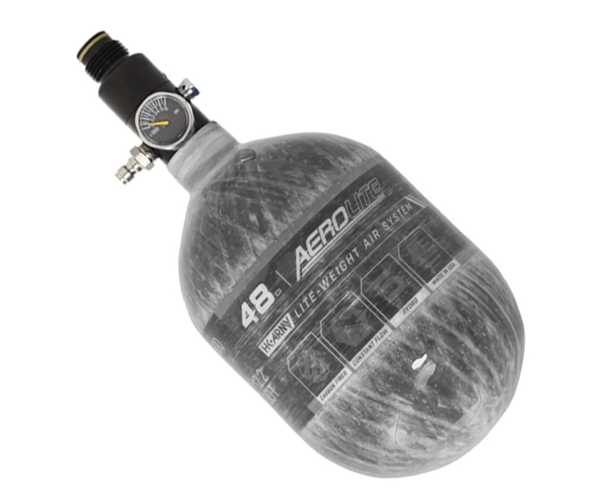 The HK Army AeroLite Air System has been developed with performance and affordability in mind. The comprehensive system pairs a lite-weight carbon fiber bottle and a reliable aluminum regulator with an output pressure of 800 psi. The AeroLite system includes a 5-year hydro cycle.