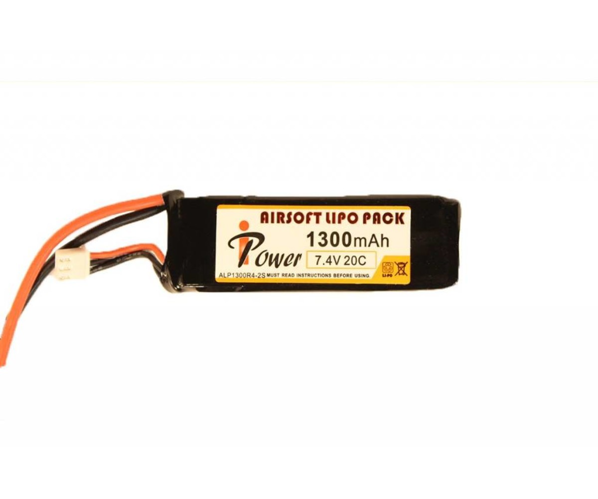 Get the most performance out of your Electric replica with iPower’s 7.4v LiPo batteries. LiPo batteries offer a significant increase in power and efficiency over NiMH batteries and have become the standard battery type for most of the airsoft community. 7.4 LiPo batteries have roughly the same output as a 9.6 NiMH battery but are smaller and easier to fit in replicas with restrictive battery space.