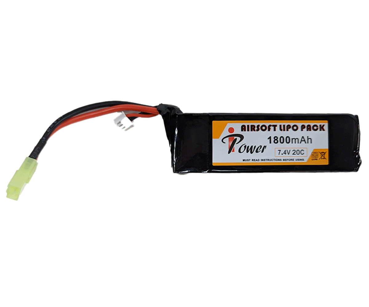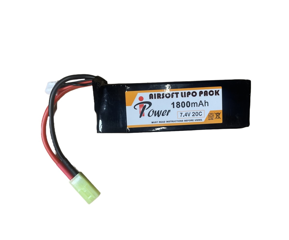 Keep your AEGs and box magazines charged with the iPower 7.4V 1800 mAh 20C LiPo battery. This larger battery is a good choice for those looking for a longer lasting power source. Due to its larger profile, some examples of uses would be options like LMGs, battery powered box magazines, and larger stocks.